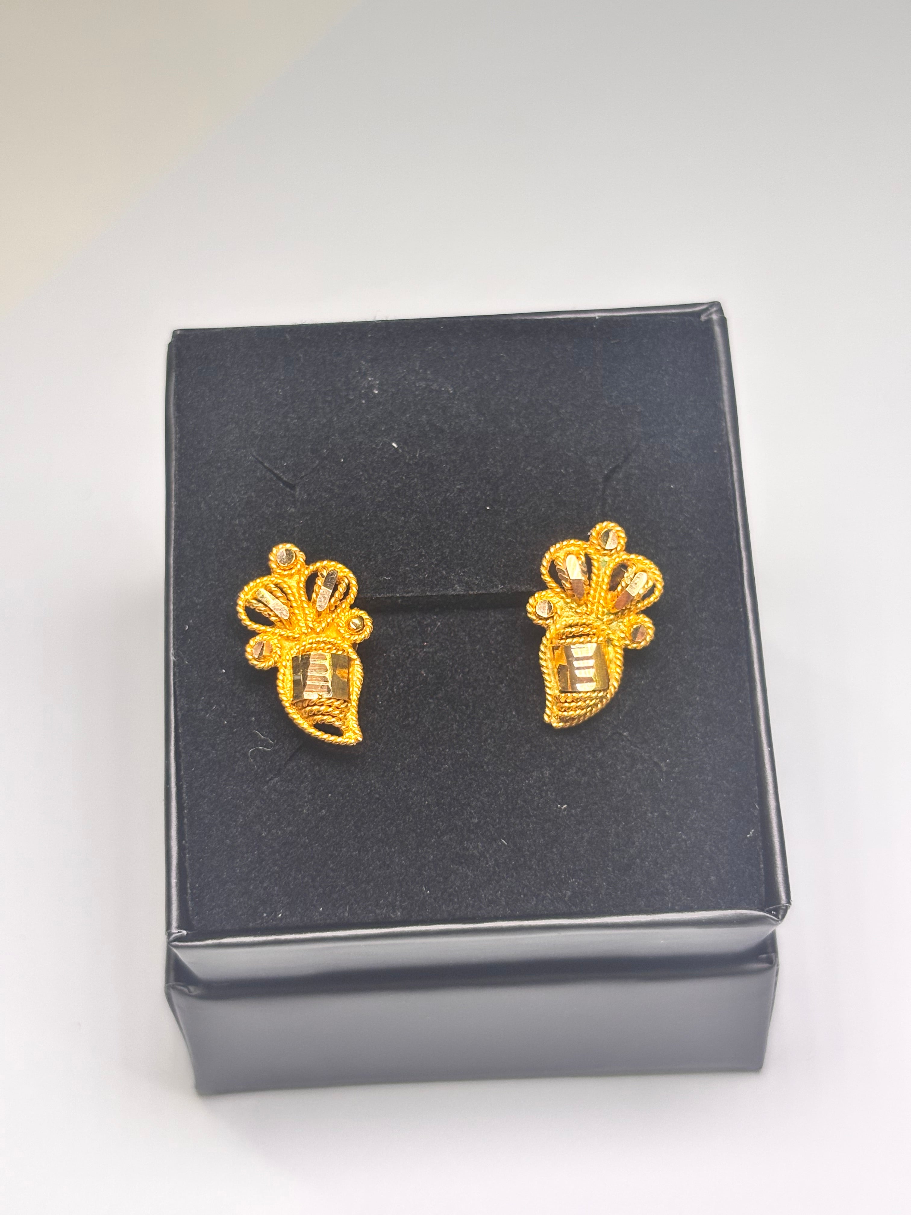 Boucles d’oreilles clou en or jaune 22 carats (titre 916/1000), fermoir poussettes. Hauteur : 2 cm ; largeur : 1 cm ; épaisseur : 0,6 mm. Poids : 2,19 g. Très bon état.