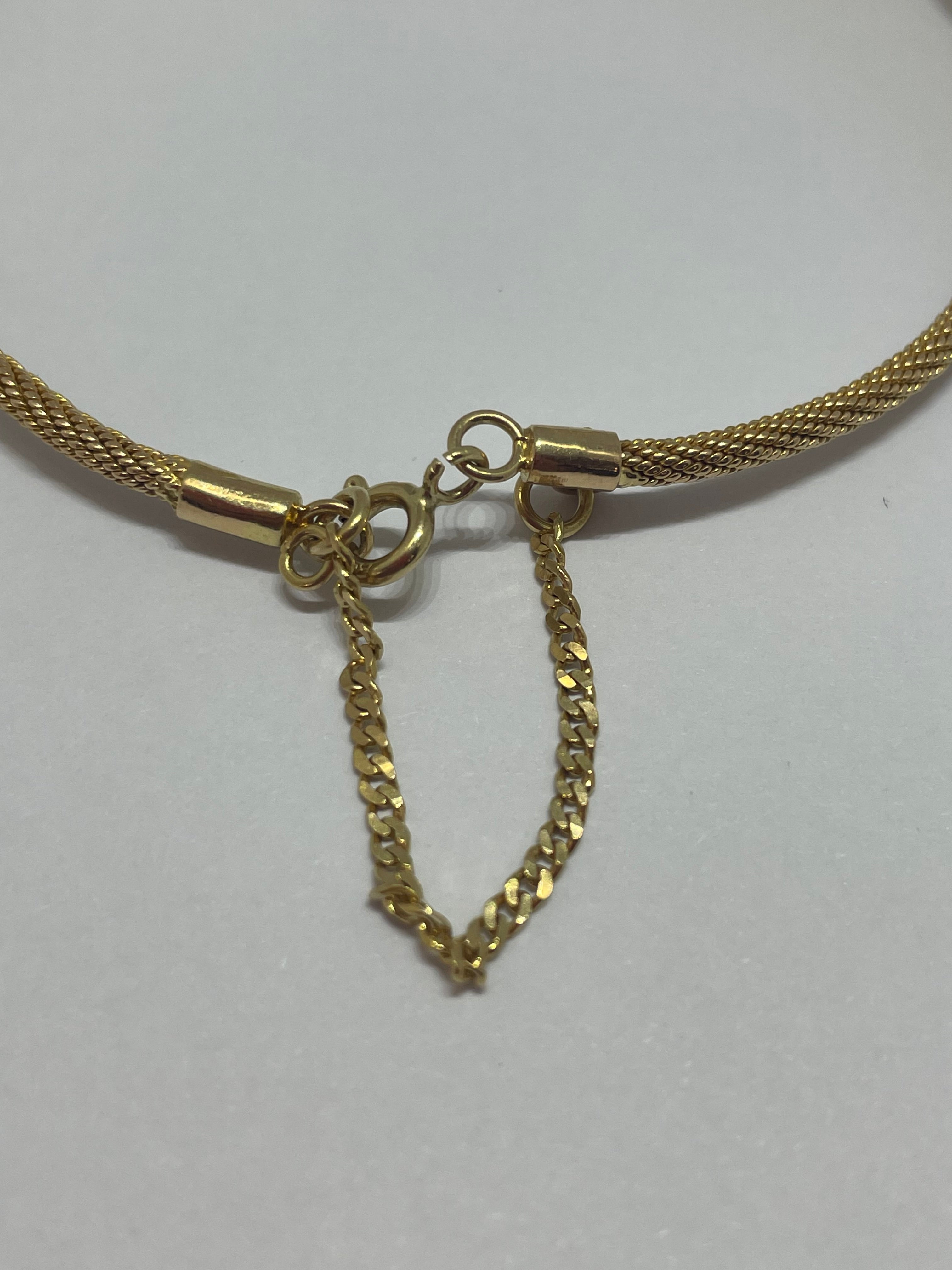 Bracelet jonc en or jaune 18 carats (750/1000), à maille corde torsadée et muni d’un fermoir à anneau ressort. Il pèse 11,78 grammes, mesure 11,5 cm de long et présente une largeur et une épaisseur de 2 mm. Ce bijou est en bon état.
