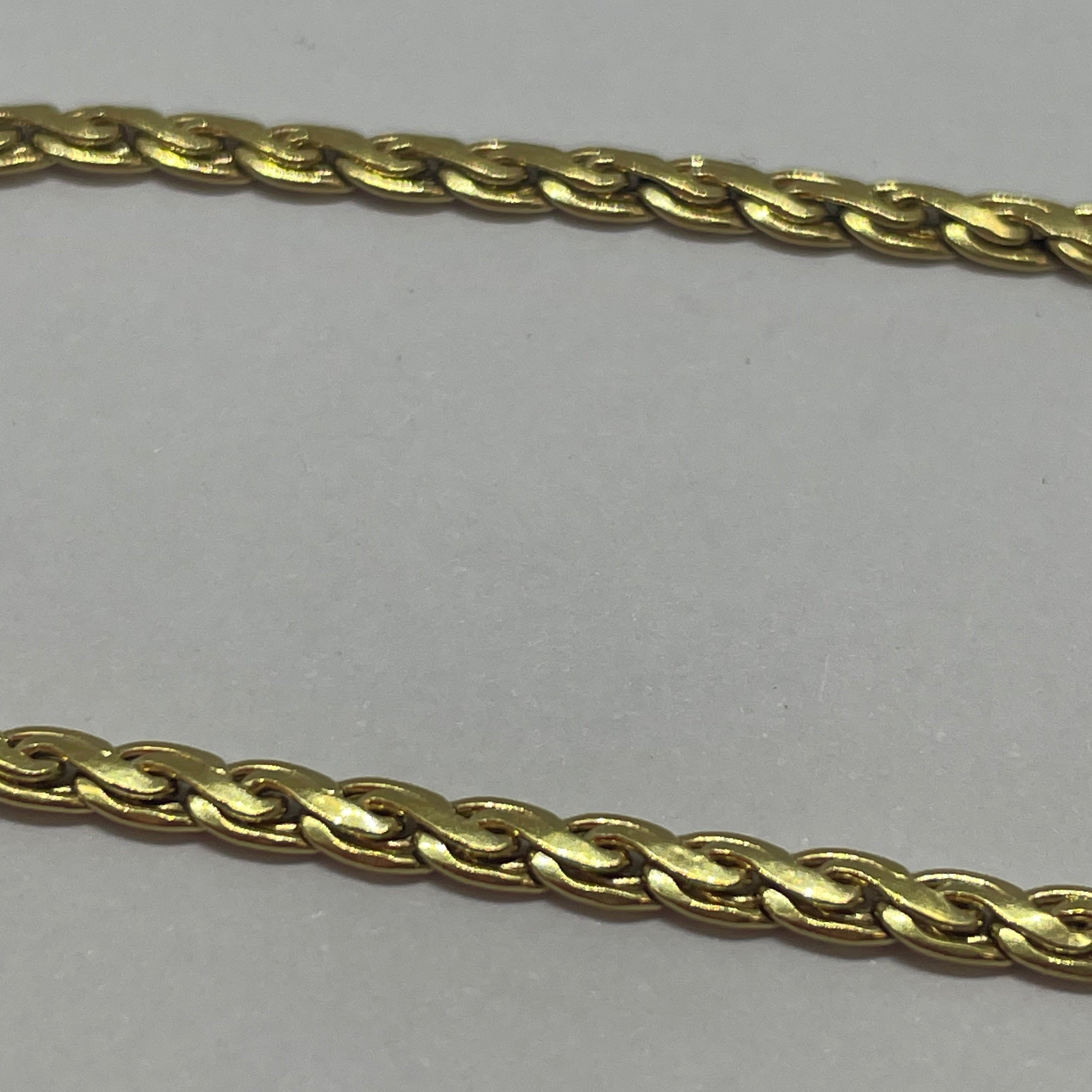 Élégant bracelet maillon en or jaune 18 carats (750/1000), au design raffiné de maille anglaise. Léger et lumineux avec un poids de 2,32 g et une longueur de 18 cm, il offre un port confortable et discret. Son fermoir à anneau ressort assure sécurité et praticité. Poinçonné 750 et Tête d’Aigle, gage d’authenticité et de qualité. Un bijou intemporel en très bon état, idéal pour compléter une tenue avec élégance.
