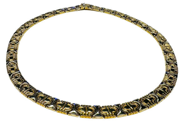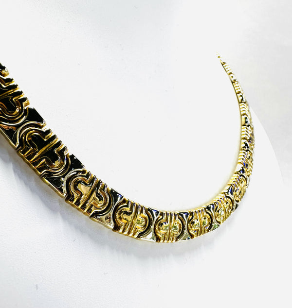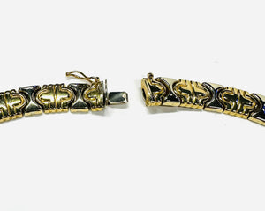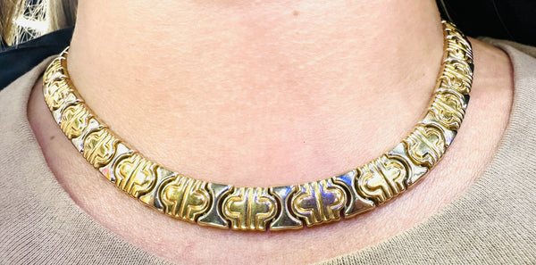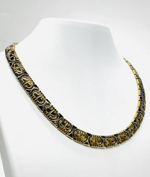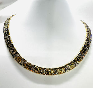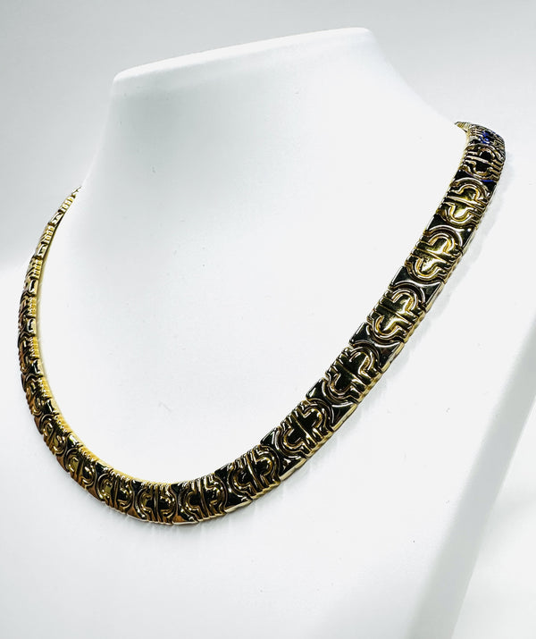 Magnifique collier or jaune et blanc 18k maille fantaisie ras du cou