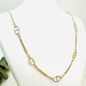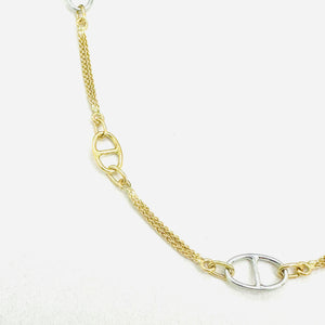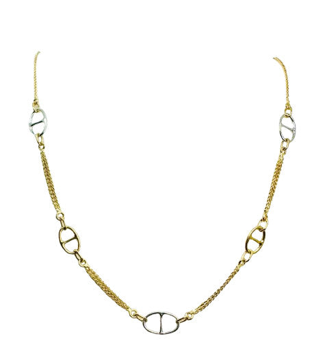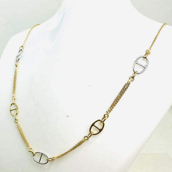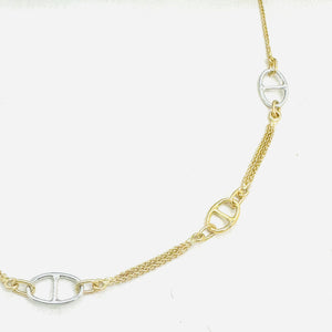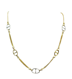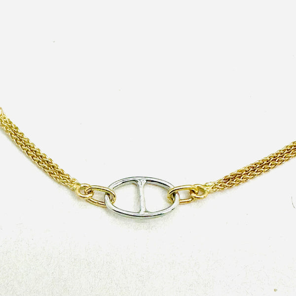 Collier chaîne en or jaune et intercalaire noeud Marine deux ors