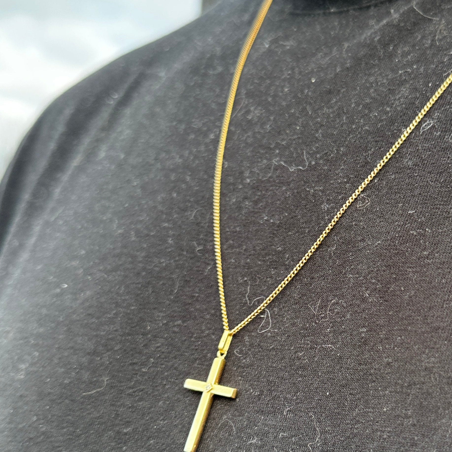 Collier de type matinée en or jaune 18 carats (750/1000), avec une maille gourmette classique et élégante. Il mesure 49 cm de longueur, pour une largeur de 2 mm et une épaisseur de 3 mm, et se ferme à l’aide d’un fermoir à anneau ressort sécurisé. Le collier est serti d’une moissanite et est poinçonné 750. Il est en bon état, prêt à être porté ou offert.