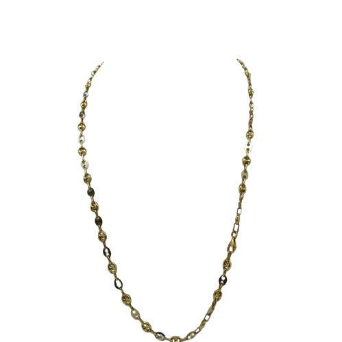 Ce superbe collier matinée en or jaune 18 carats (750/1000), poinçonné 750, séduit par sa maille grain de café à la fois généreuse et distinctive. Avec un poids de 14,30 grammes et une longueur de 52 cm, il repose élégamment sur le buste pour une allure élégante et affirmée. Sa largeur de 5,01 mm et son épaisseur de 2,09 mm lui confèrent une belle présence, tandis que son fermoir mousqueton assure une fermeture sécurisée et pratique.