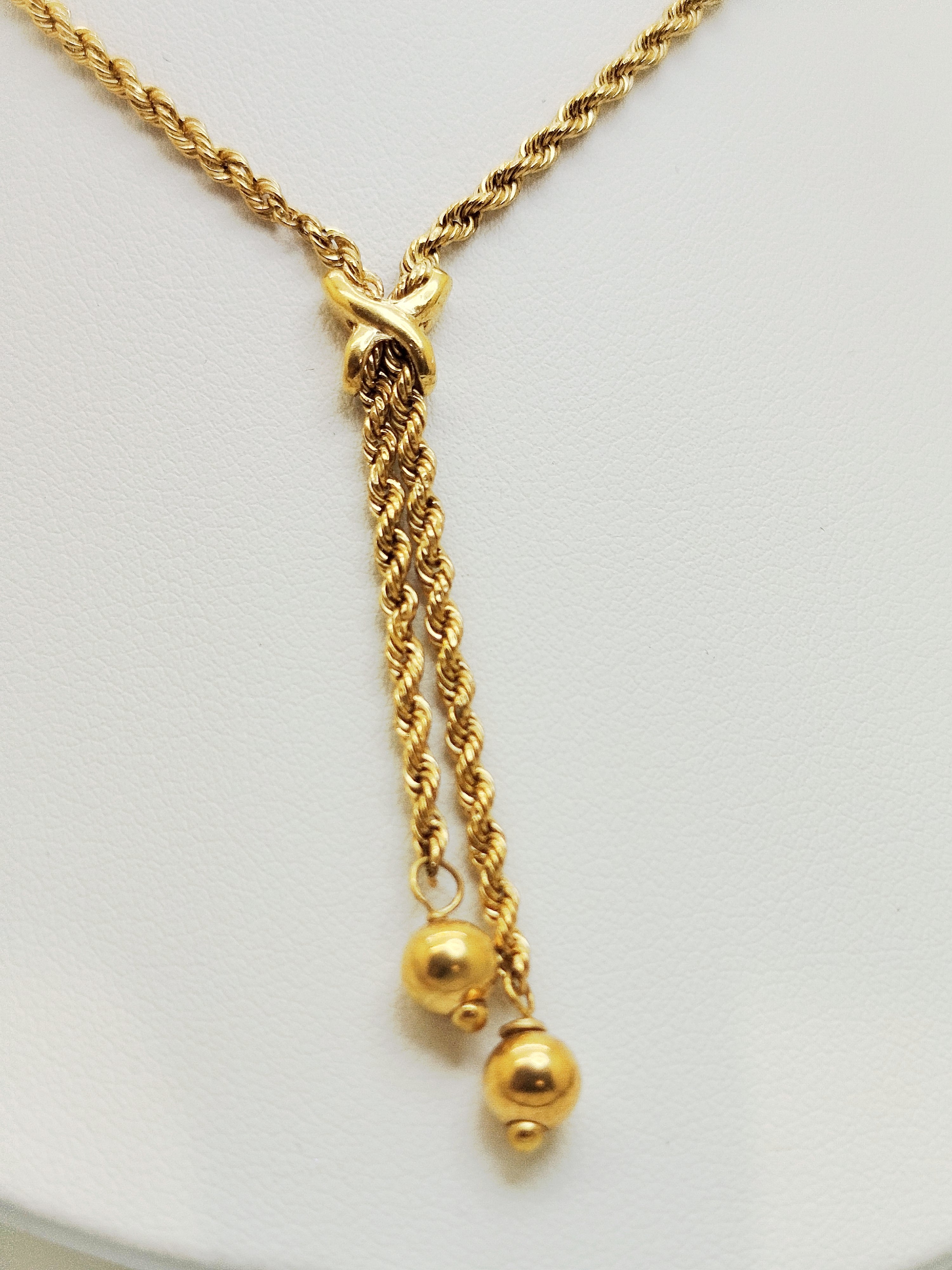Magnifique collier cravate en or jaune 18 carats (750/1000). Pesant 4.47 grammes. Il mesure 40 cm de long et 0,2 cm de largeur et d'épaisseur.