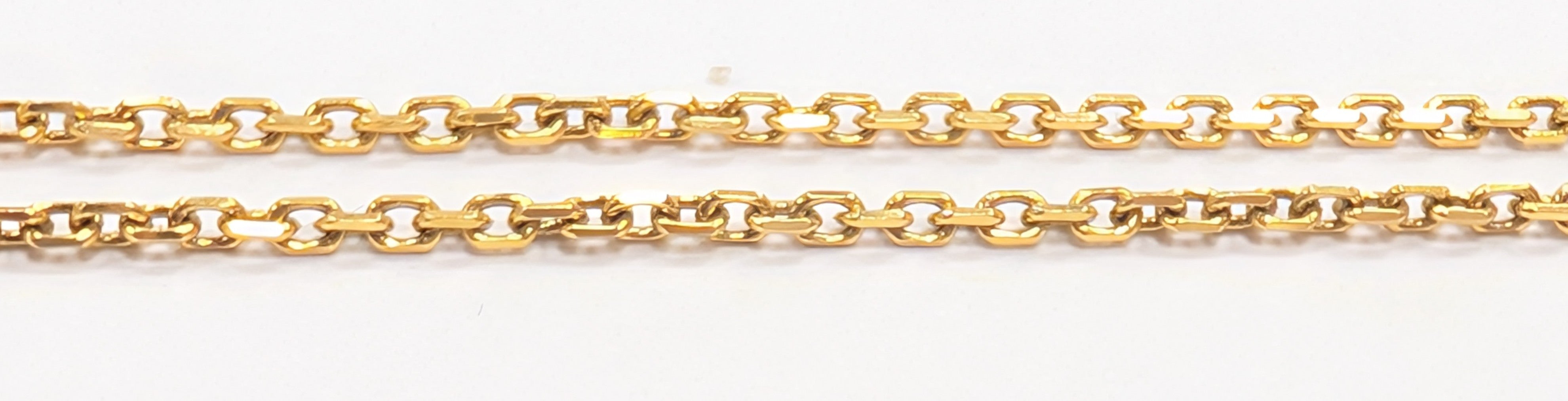 Collier de type "Princesse" est façonné en or jaune 18 carats (750/1000) et porte le poinçon en forme de tête d’aigle, symbole de qualité et d’authenticité. Il présente une maille forçat classique et robuste, avec une longueur de 50,05 cm, une largeur et une épaisseur de 1 mm. Son poids de 49,4 grammes en fait une pièce remarquable et élégante. Doté d’un fermoir à anneau ressort.