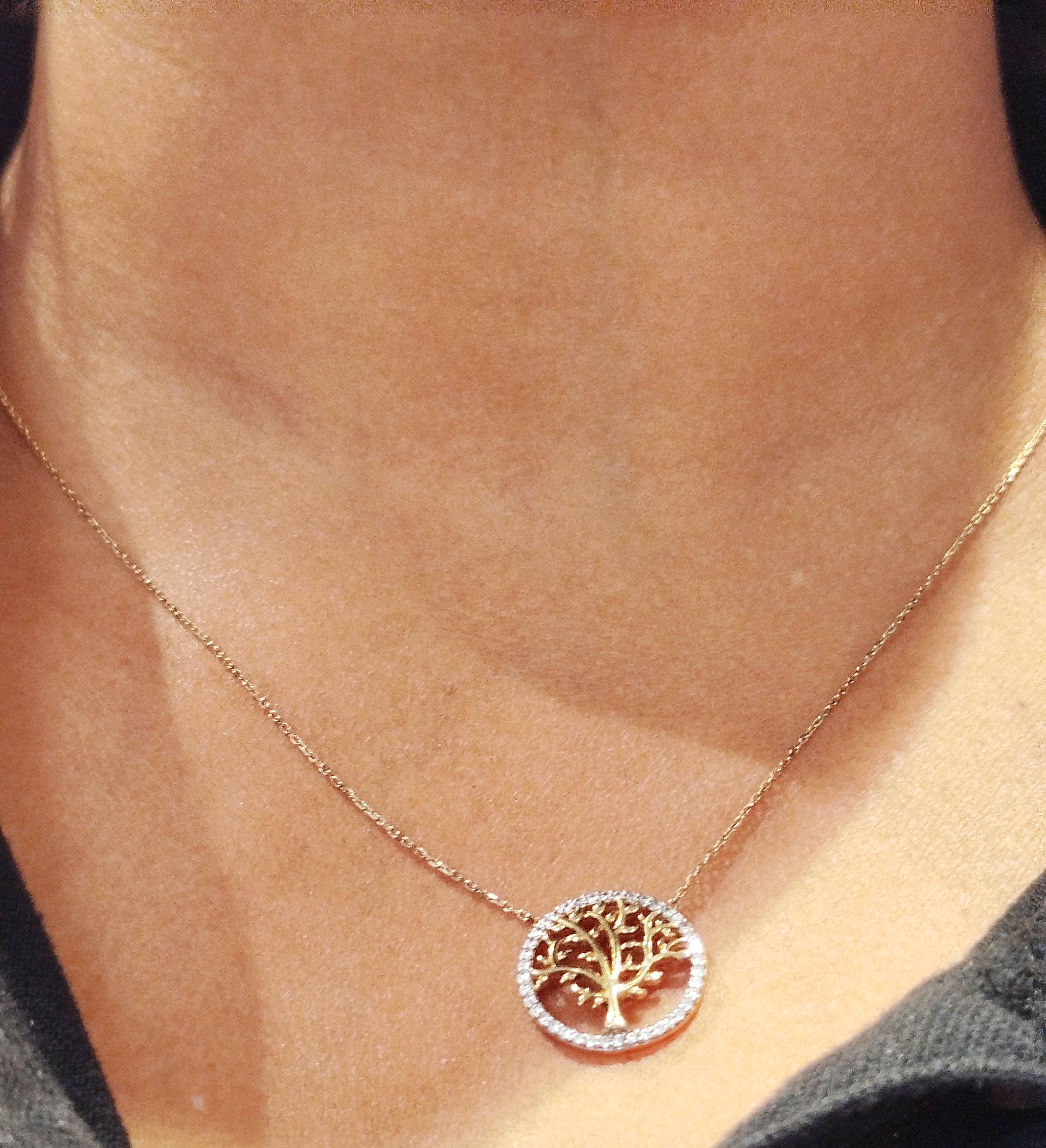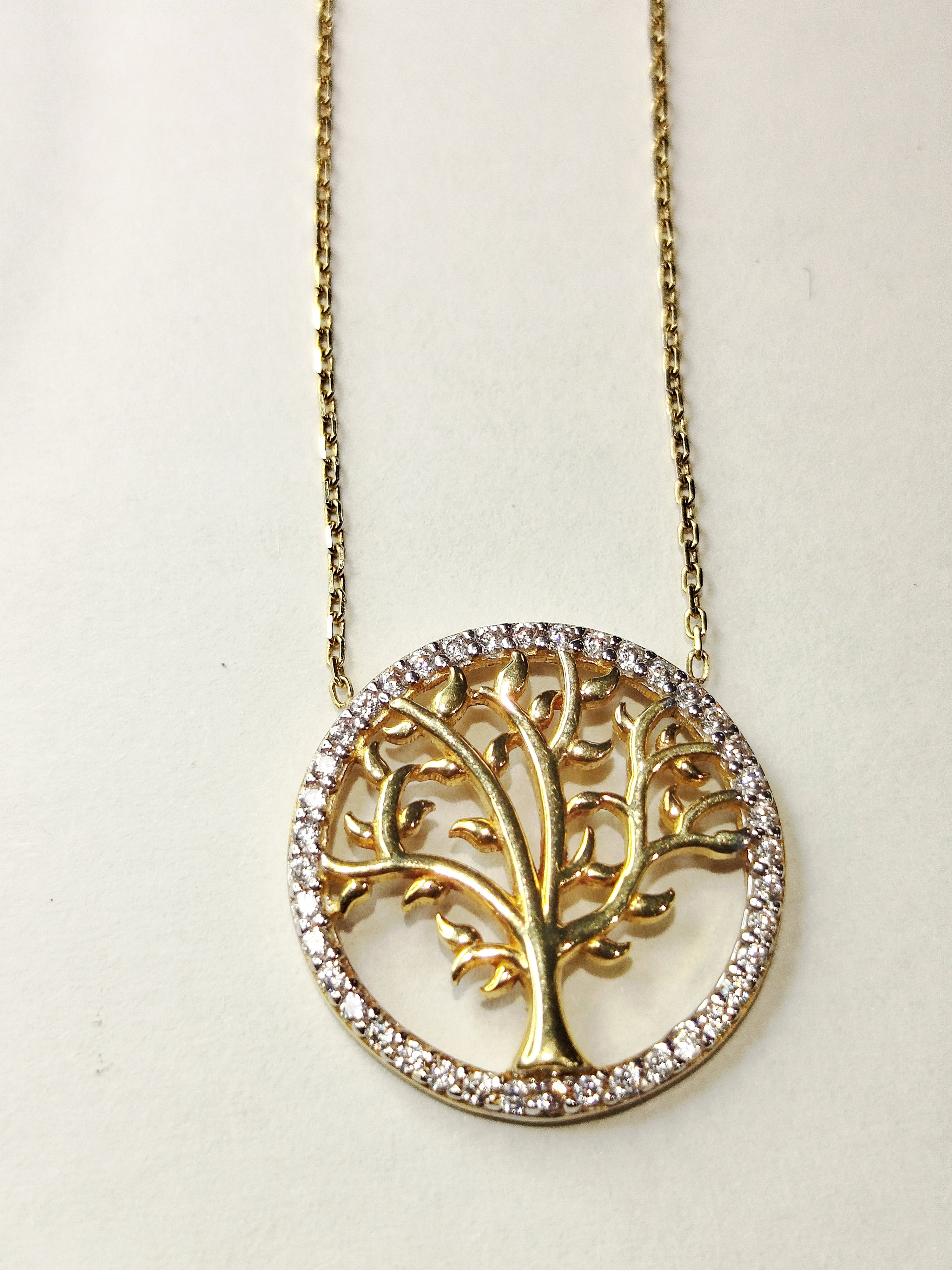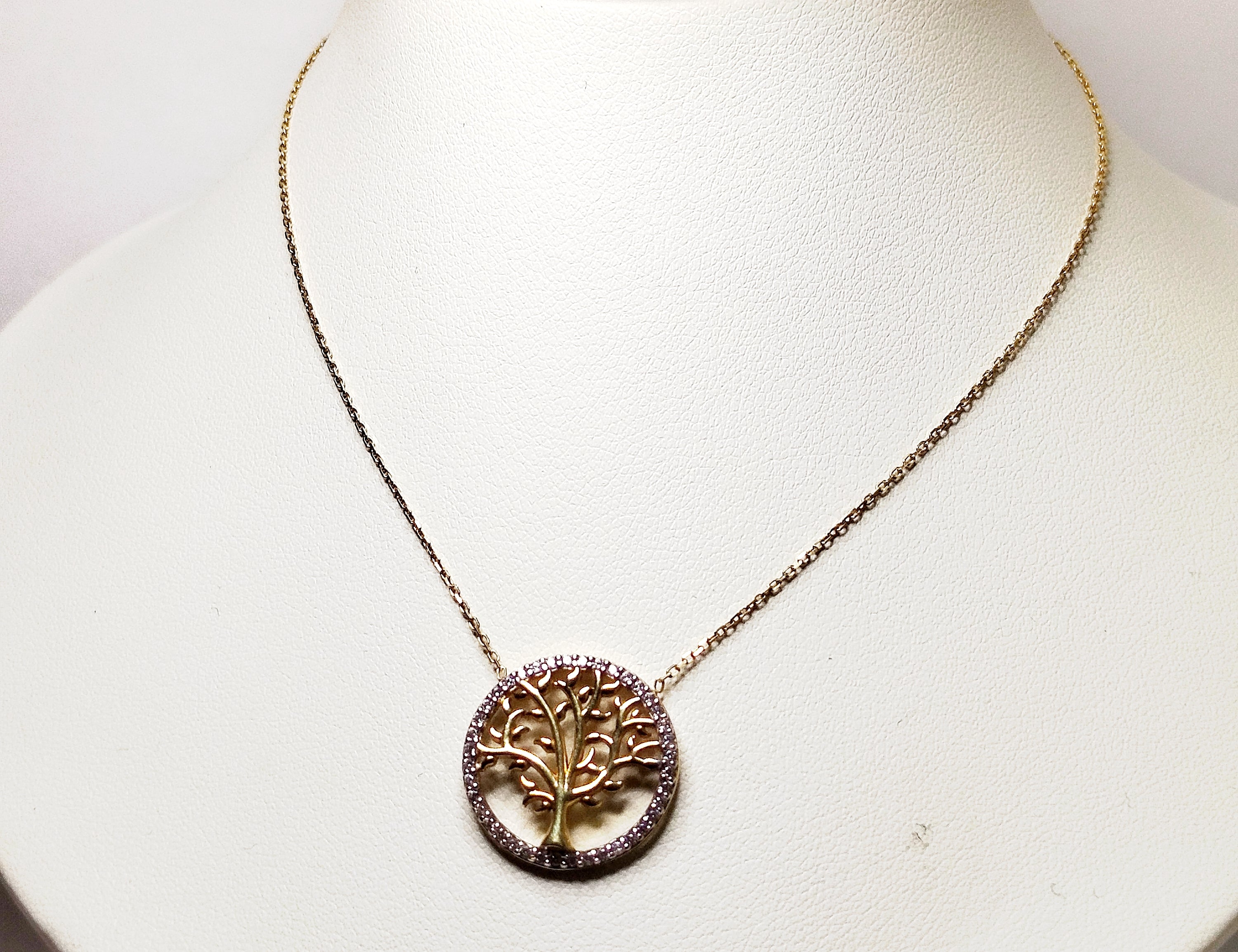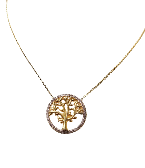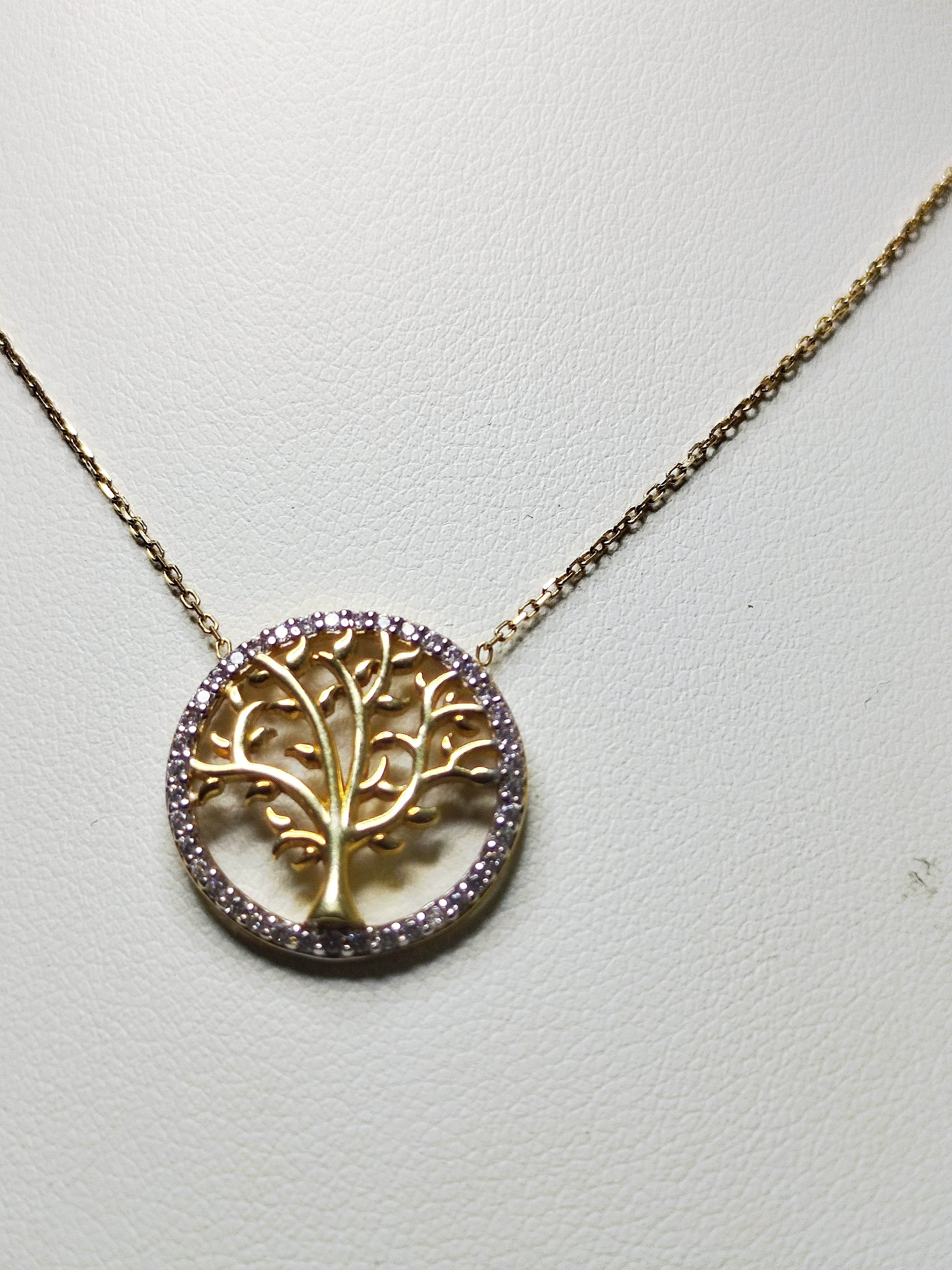 Collier avec pendentif arbre de vie en or jaune 18 carats (750/1000).Pesant 3,07 grammes. Avec une longueur de 45 cm, une largeur et d'épaisseur de 0.1 cm .