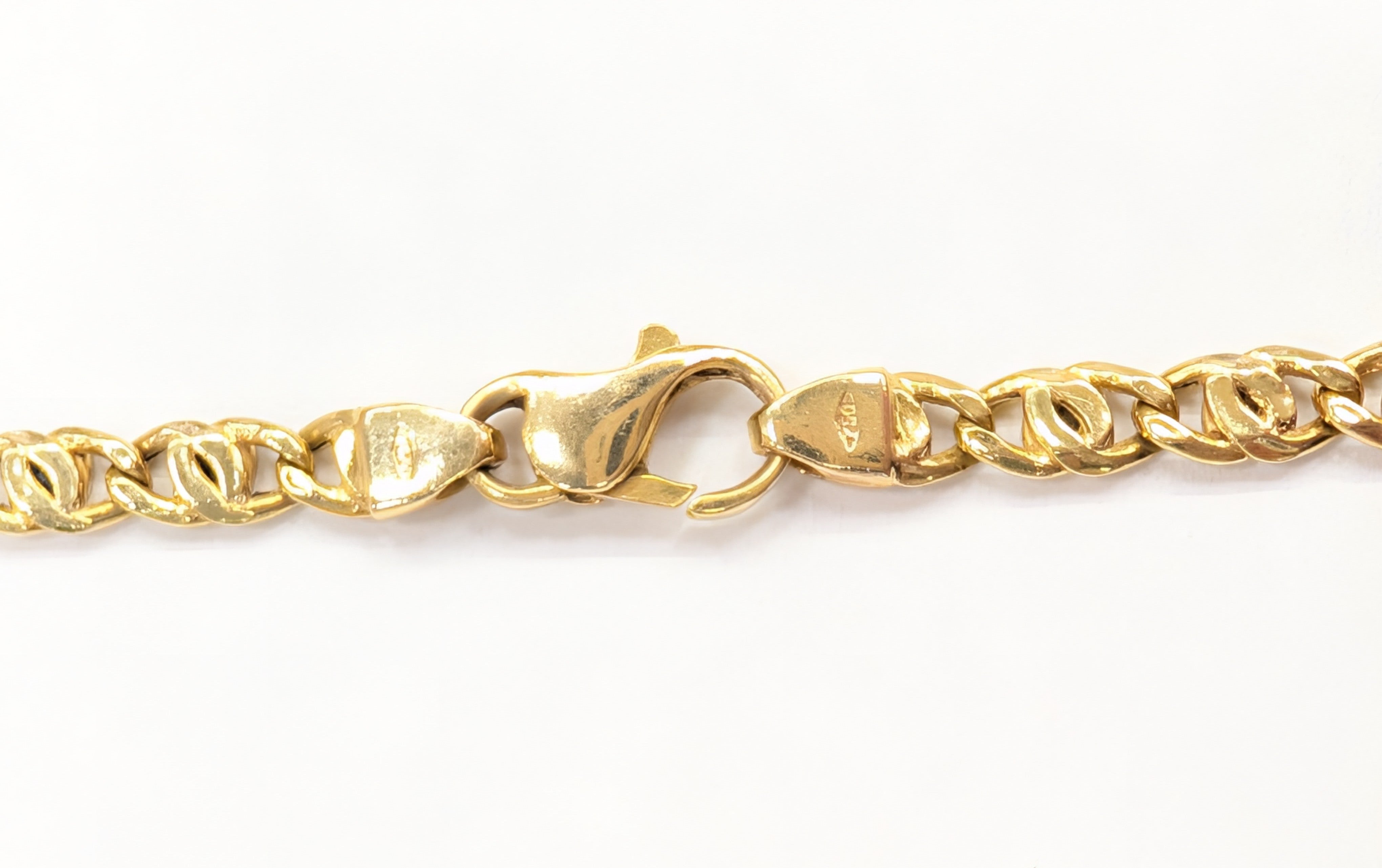Élégant et intemporel, ce collier maille marine en or jaune 18 carats allie finesse et solidité. Long de 52 cm et doté d’un fermoir mousqueton sécurisé, il se distingue par son éclat raffiné et sa qualité de fabrication. Avec un poids de 12,87 g et en très bon état, c’est un bijou classique et durable, parfait à porter seul ou avec un pendentif.