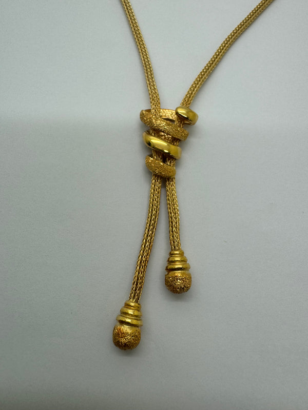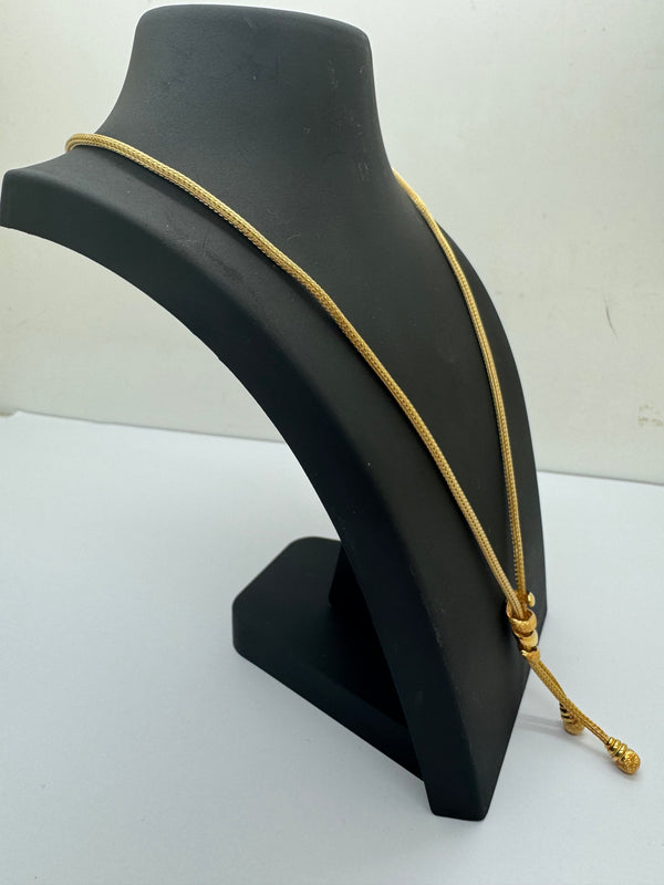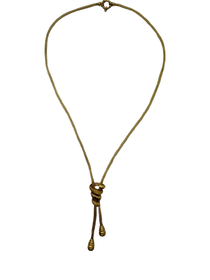 Collier de type Princesse en or jaune 18 carats (750/1000), poinçonné Tête d’Aigle. Il pèse 10,99 g et mesure 42 cm de long, avec une maille originale de 1,6 mm d’épaisseur. Fermoir bouée. Sans pierres. Bon état.