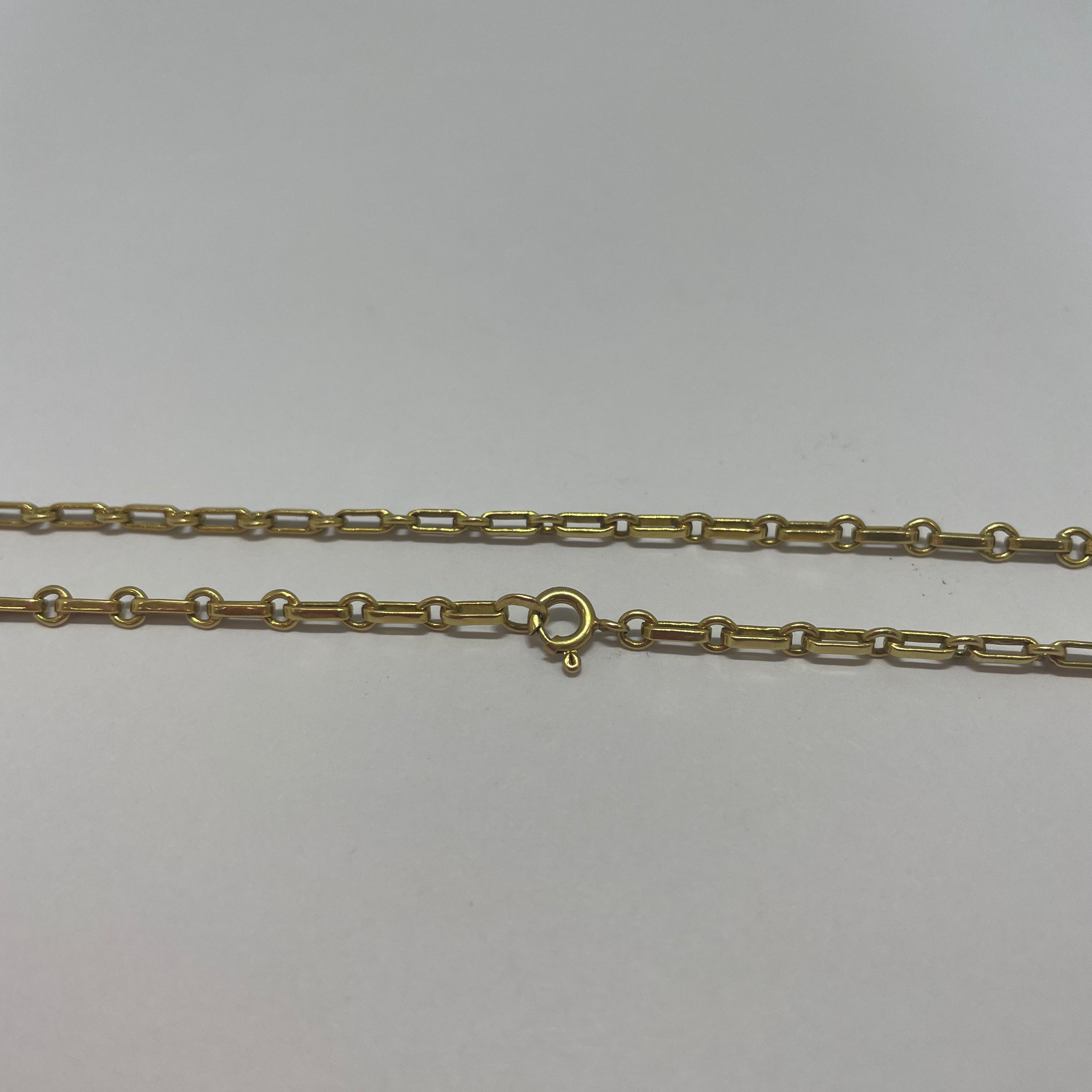 Raffiné collier princesse en or jaune 18 carats (750/1000), orné d’une maille cheval élégante et lumineuse. Avec un poids de 9,80 g et une longueur de 46 cm, il offre un équilibre parfait entre finesse et présence. Son fermoir à anneau ressort assure un port sécurisé et confortable. Poinçonné Tête d’Aigle, gage d’authenticité et de qualité. Sans pierre, il met en valeur la pureté et la brillance naturelle de l’or. Un bijou intemporel en très bon état, idéal pour sublimer toutes les occasions.