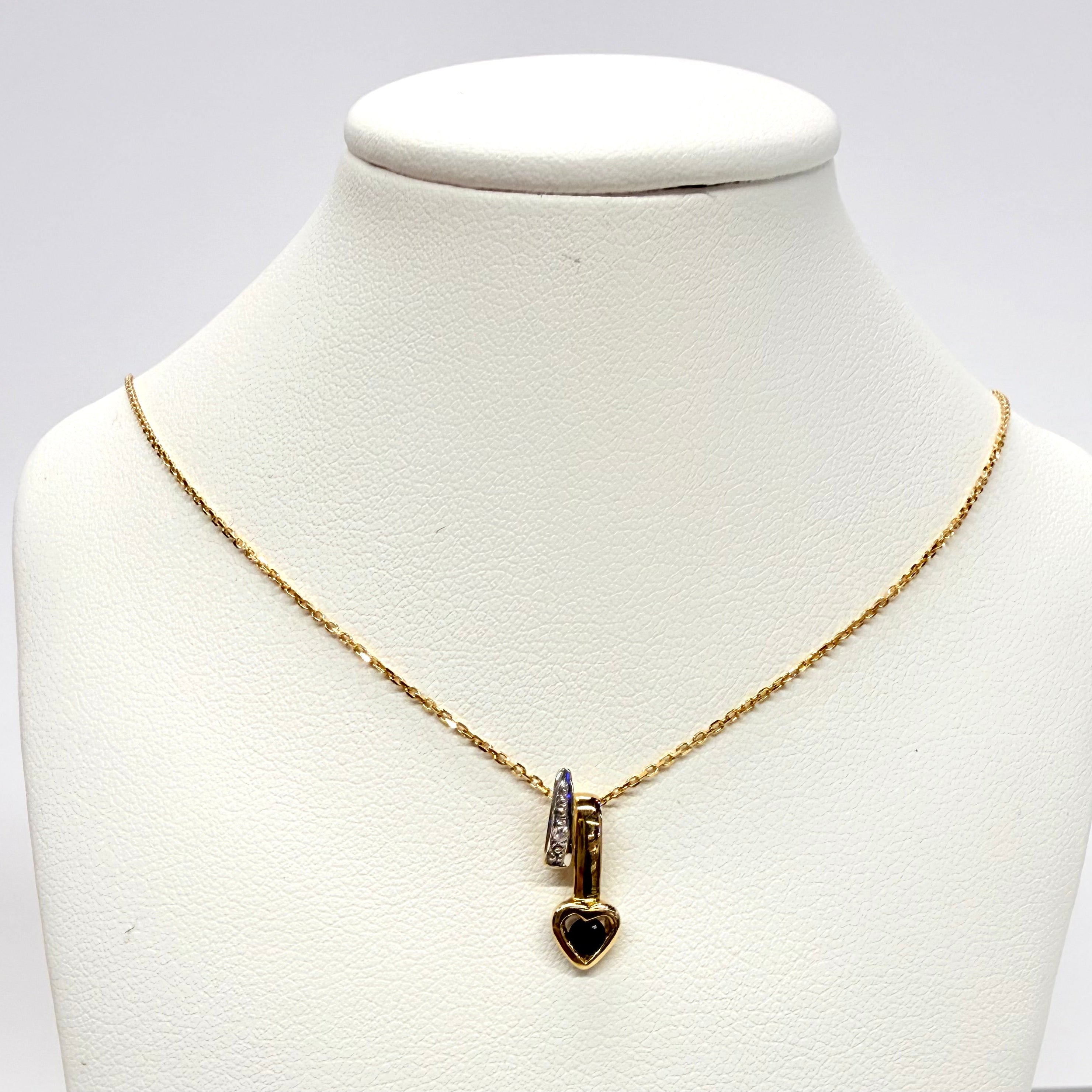 ce collier princesse en or jaune et blanc 18 carats (1,81 g) est orné d’un saphir et d’un éclat de diamant, apportant brillance et sophistication. Longueur 45 cm, très bon état, parfait pour sublimer toutes vos tenues.