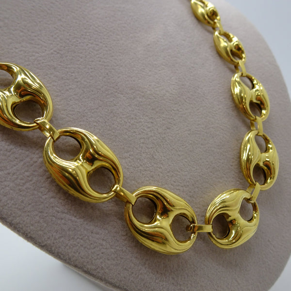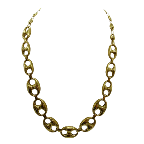 Laissez-vous séduire par ce somptueux collier en or jaune 750/1000 (18 carats), mettant en valeur la célèbre maille grain de café, un design audacieux et intemporel qui ne passe jamais inaperçu.