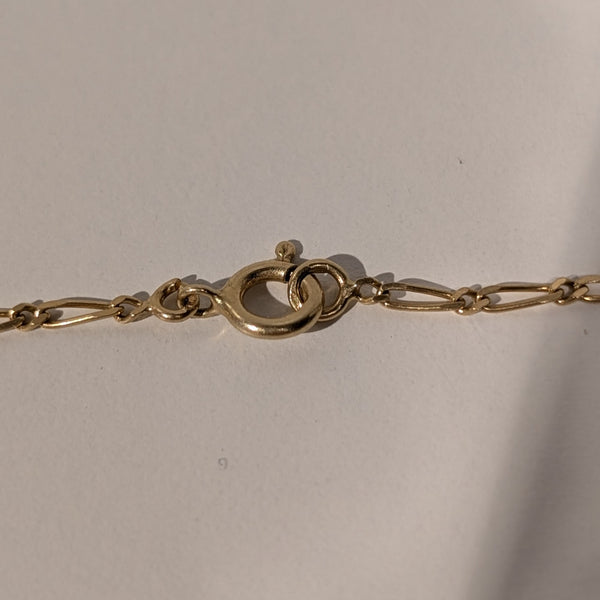 Ce collier ras du cou en or jaune 18 carats (750/1000), poinçonné 750, se distingue par sa maille Figaro délicate et raffinée. Avec un poids de 3,79 grammes et une longueur de 40 cm, il épouse gracieusement le cou. Sa largeur de 0,2 cm et son épaisseur de 0,1 cm assurent une finesse subtile, sublimée par le sertissage de 7 perles naturelles. Son fermoir anneau ressort garantit une fixation sûre.
