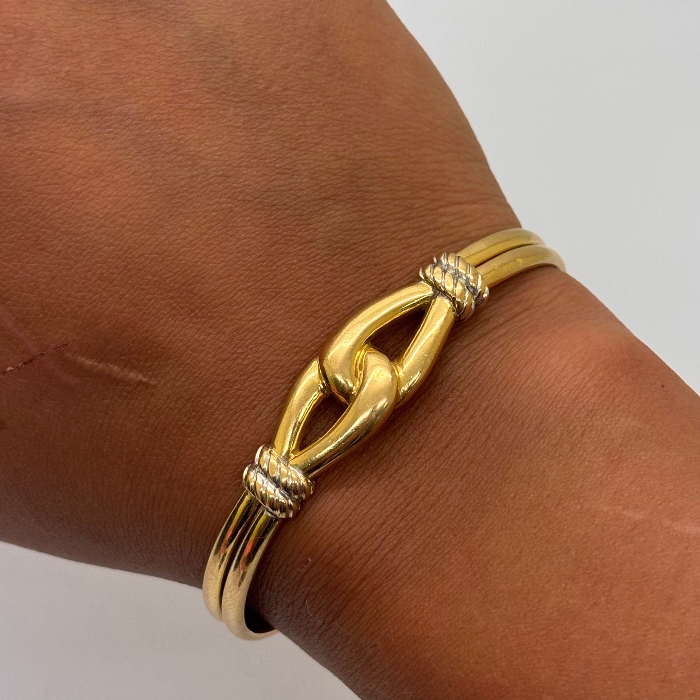 Bracelet jonc en or jaune 18 carats (750/1000), poinçonné à la tête d’aigle, il pèse 12.99 grammes, mesure 18 CM de long sur 6.3 CM de large, avec une épaisseur de 2.8 MM.