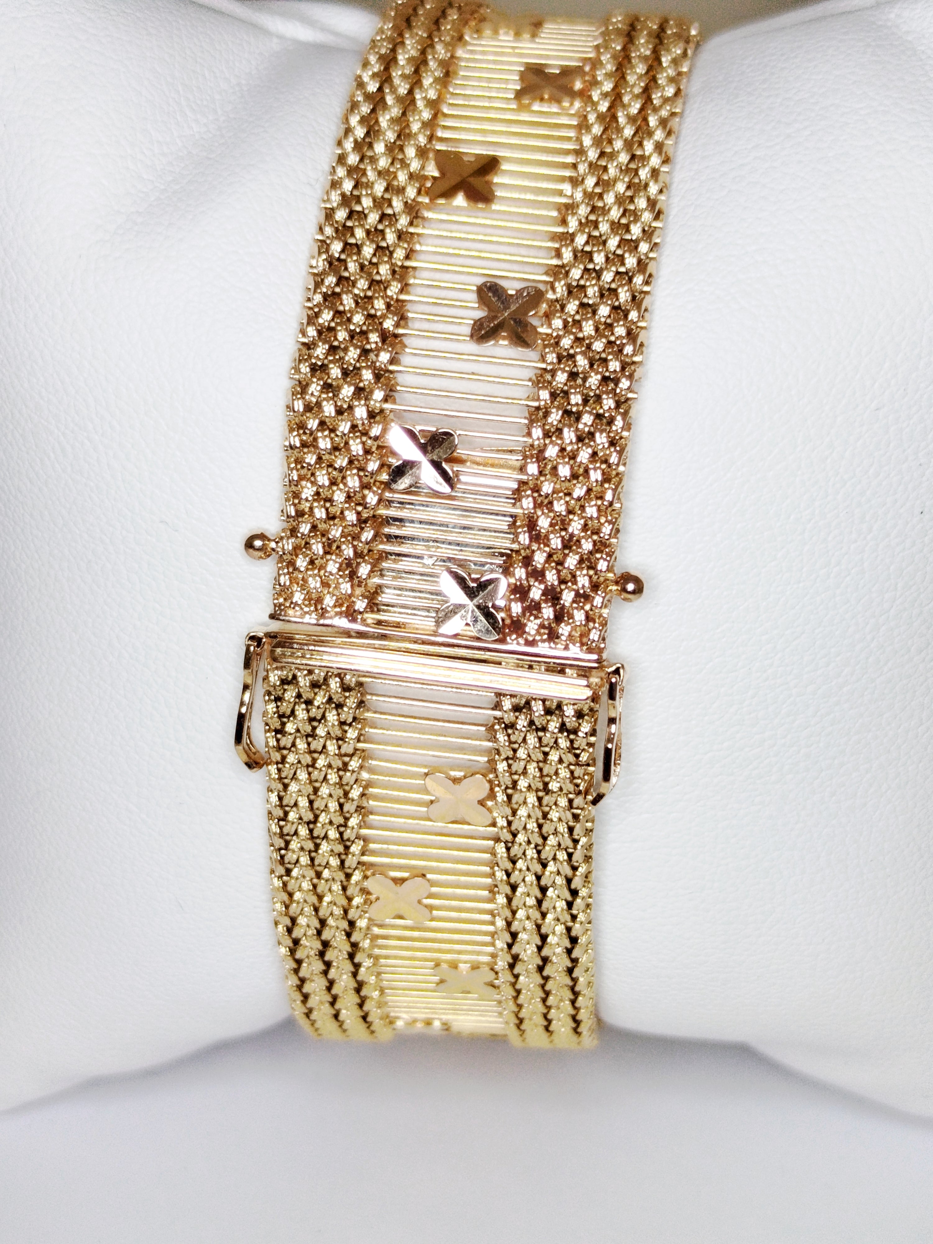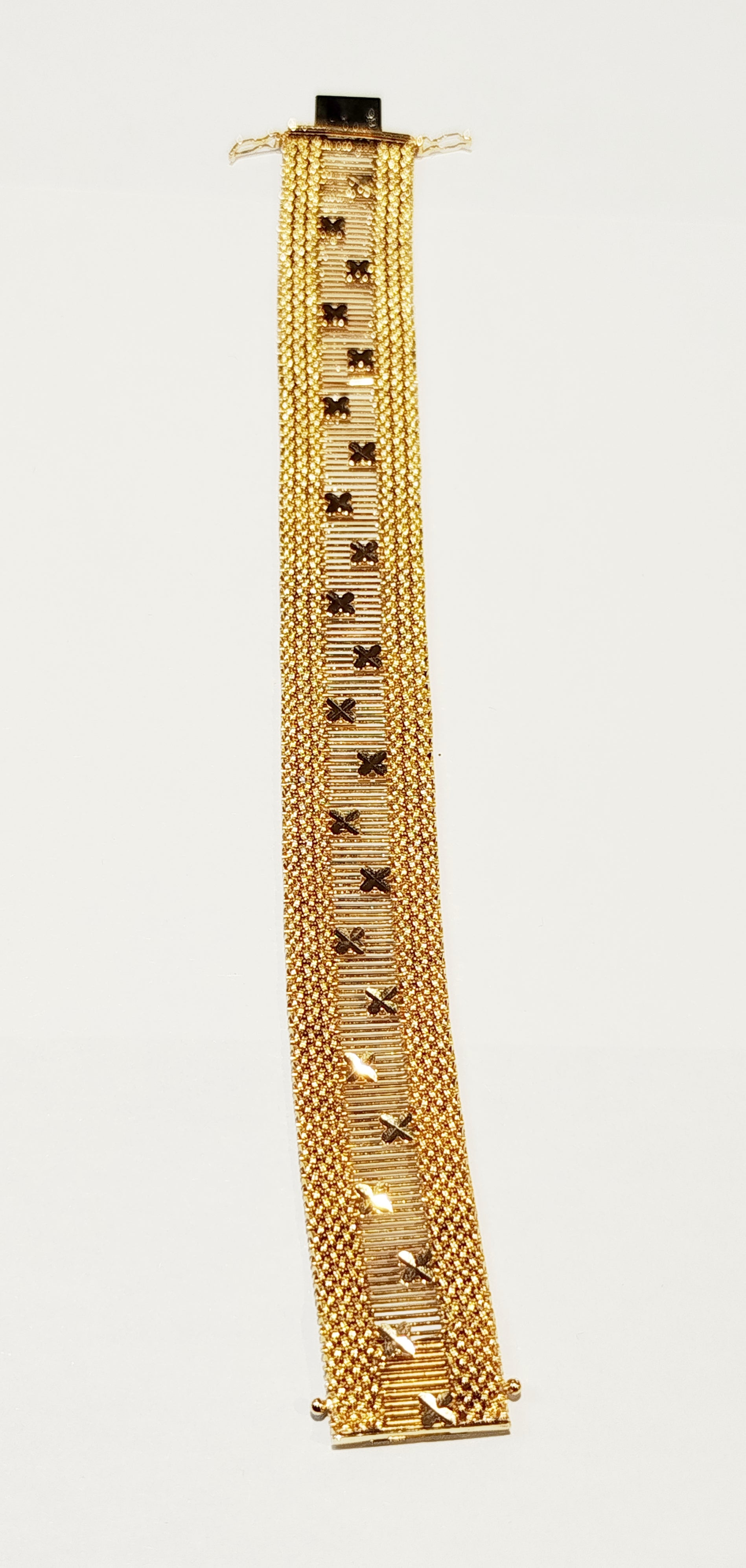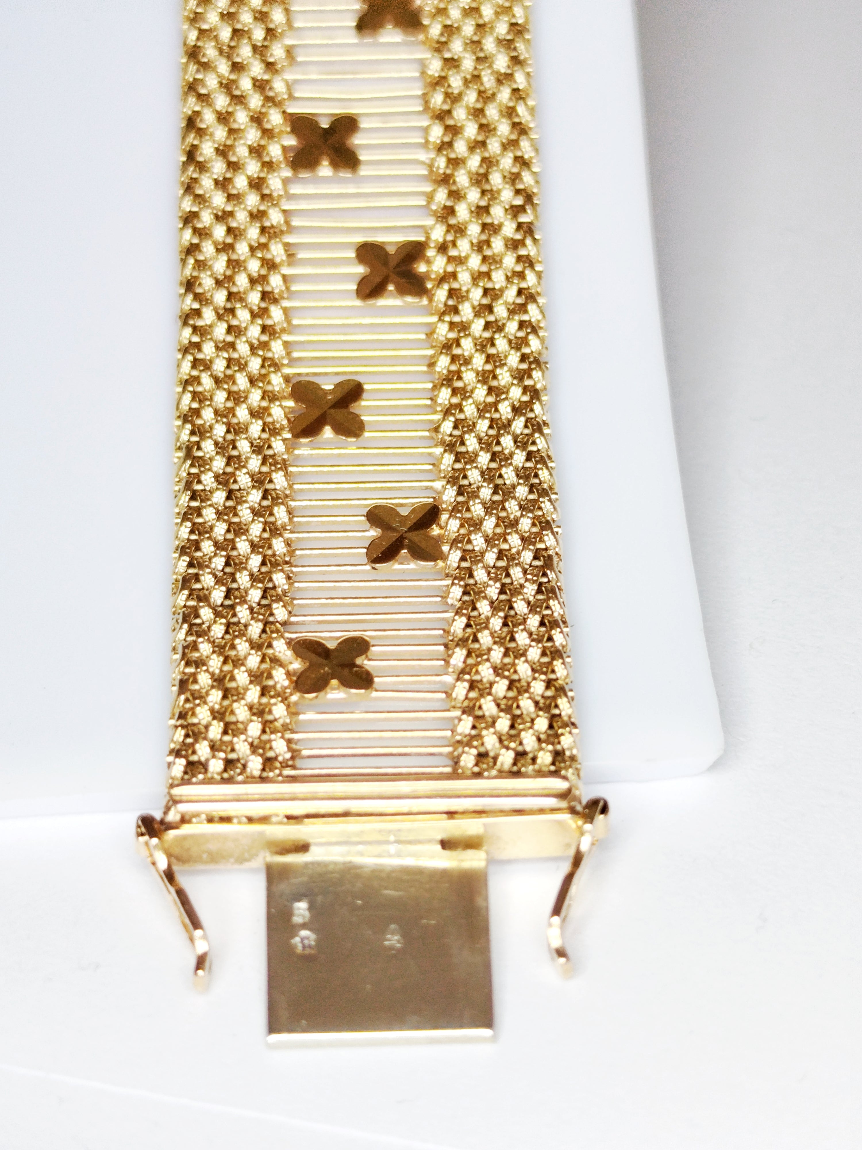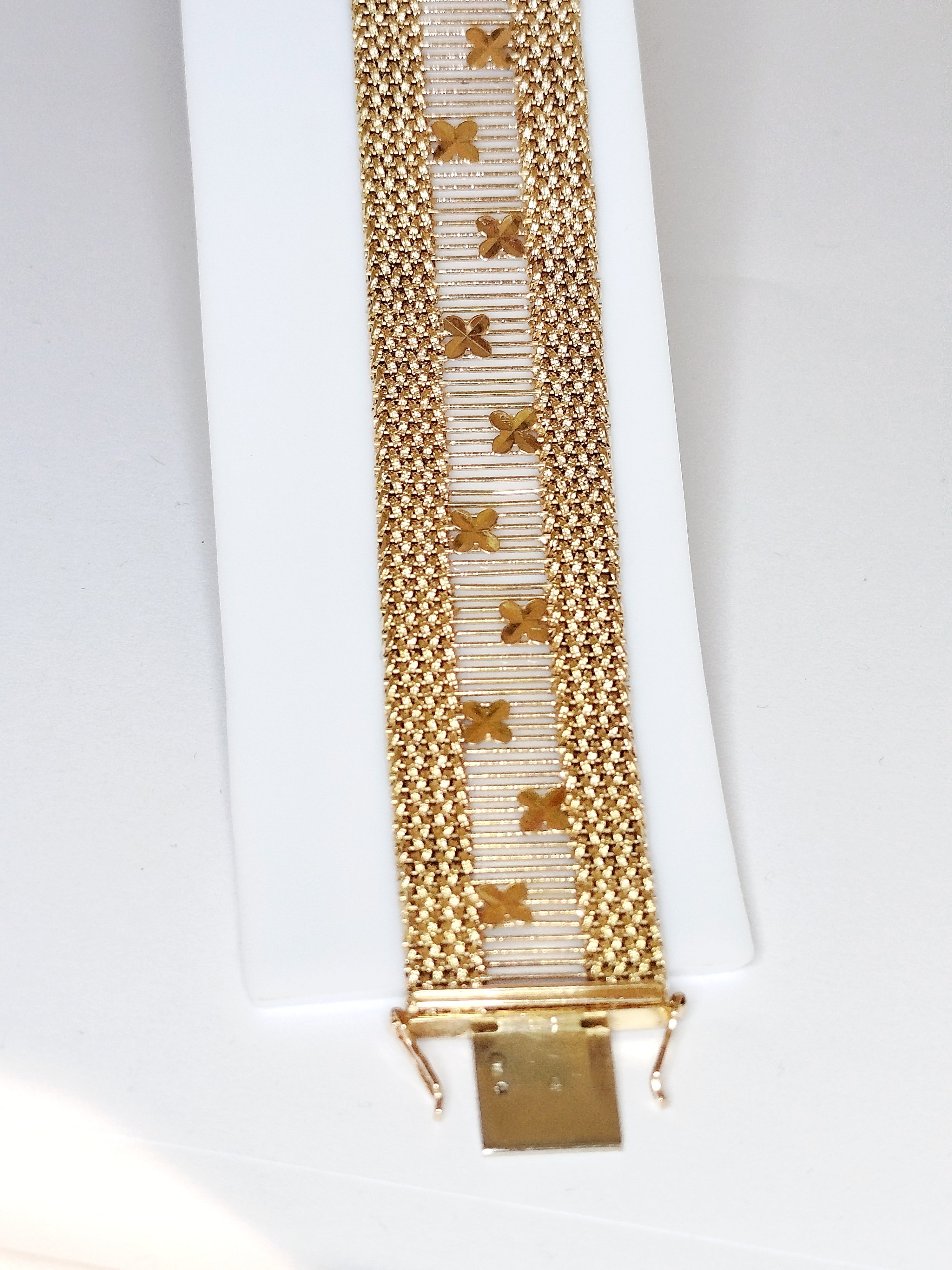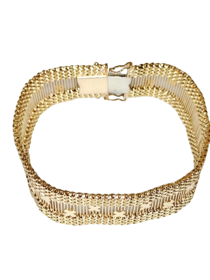 Magnifique bracelet en or jaune 18 carats (750/1000). Poinçonnée tête d'aigle. Pesant 54.17 grammes.Il mesure 21cm de long , 2 cm de largeur et 0,2 cm d'épaisseur.