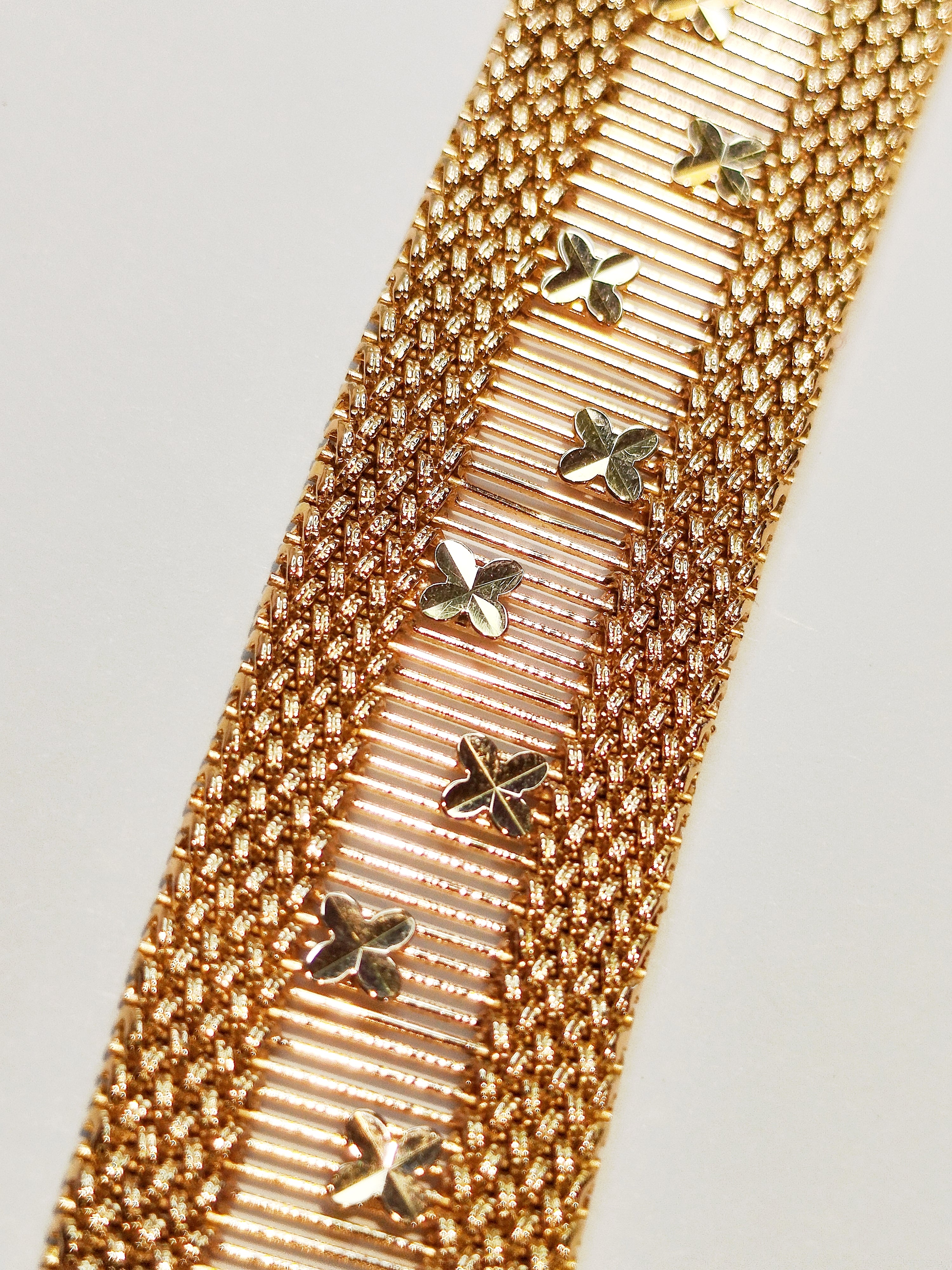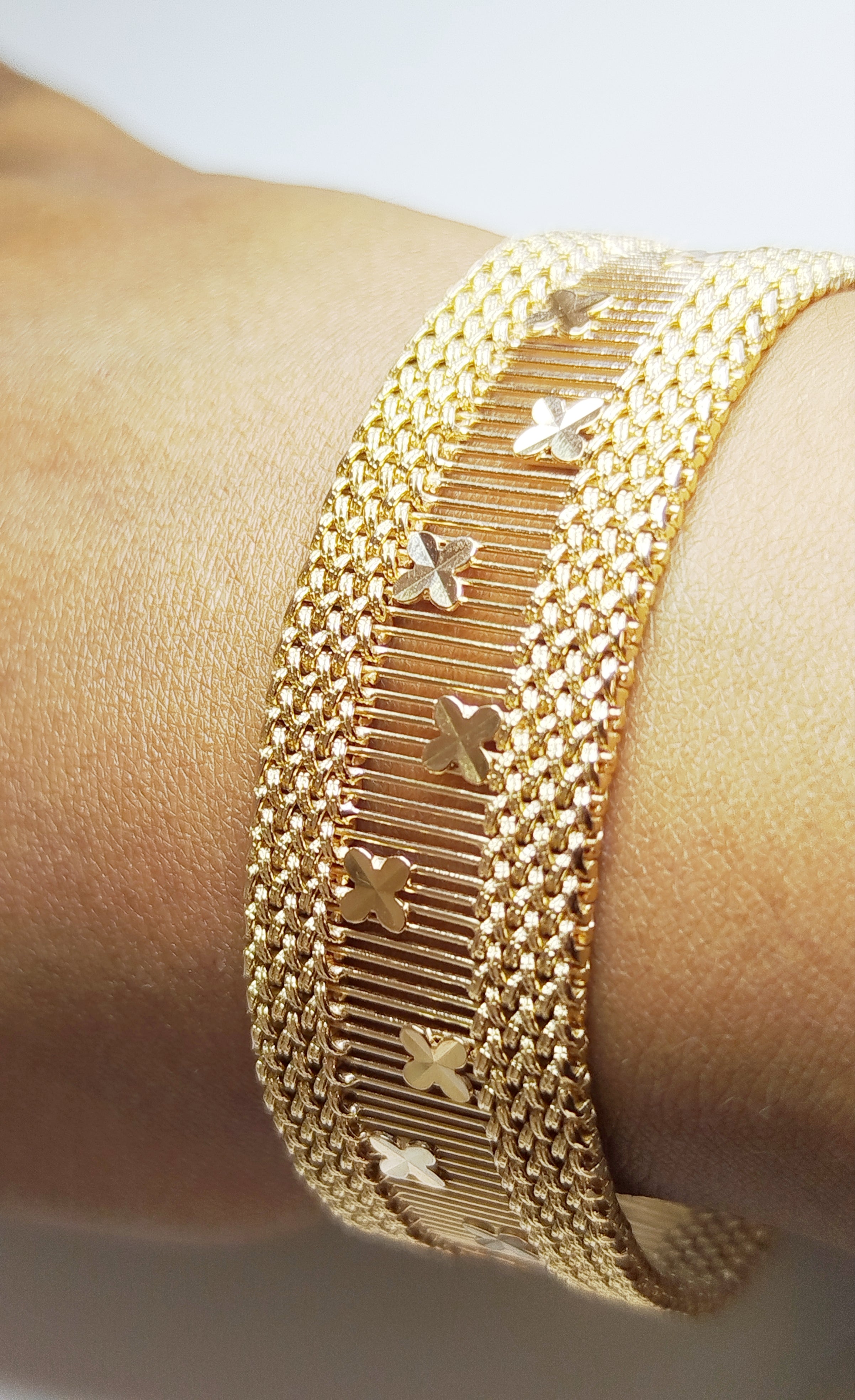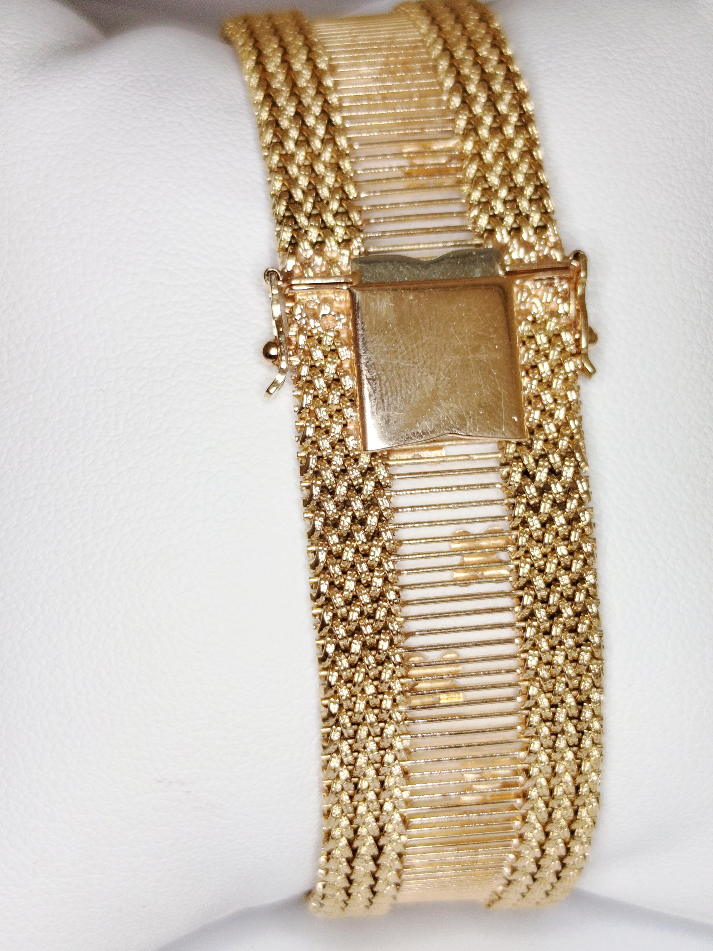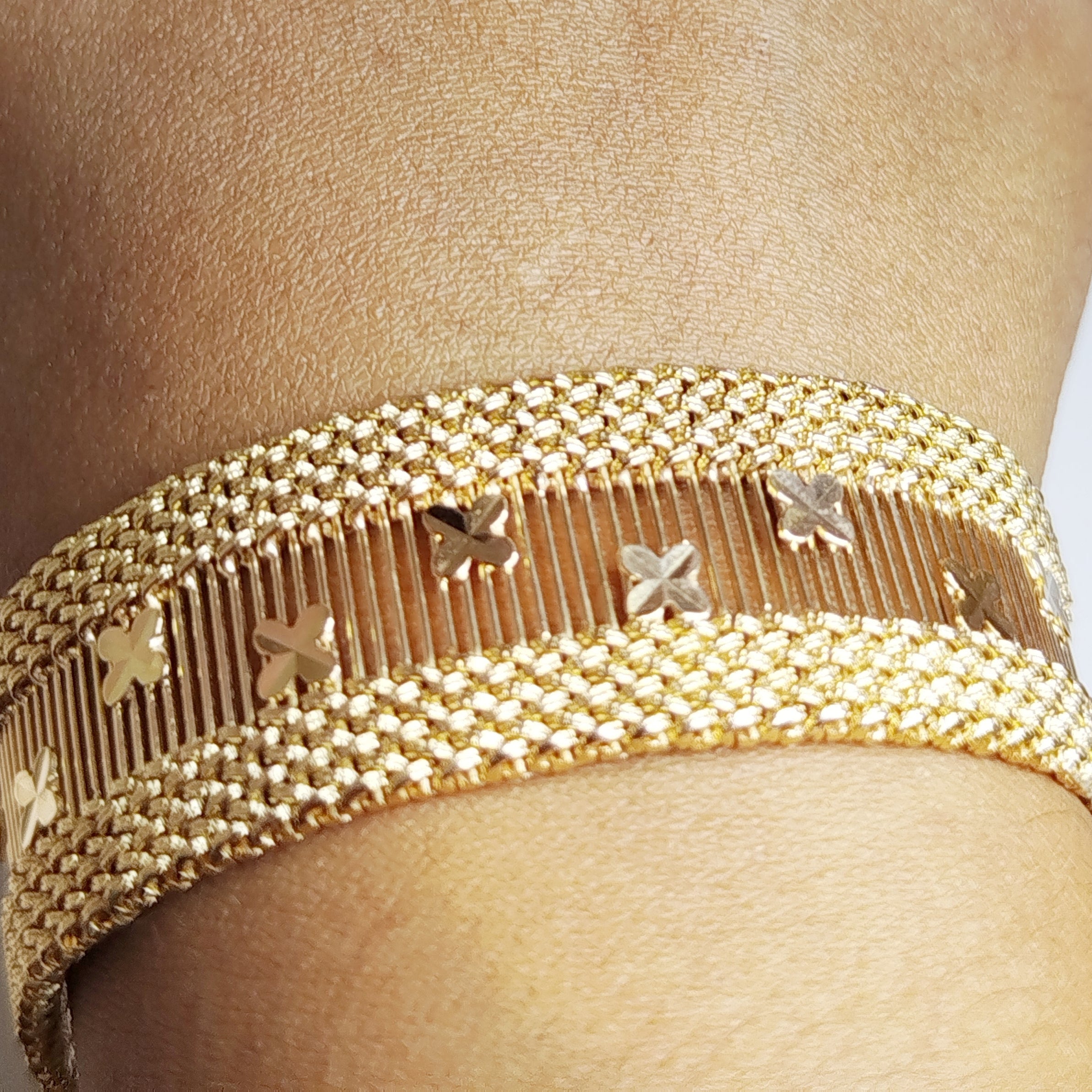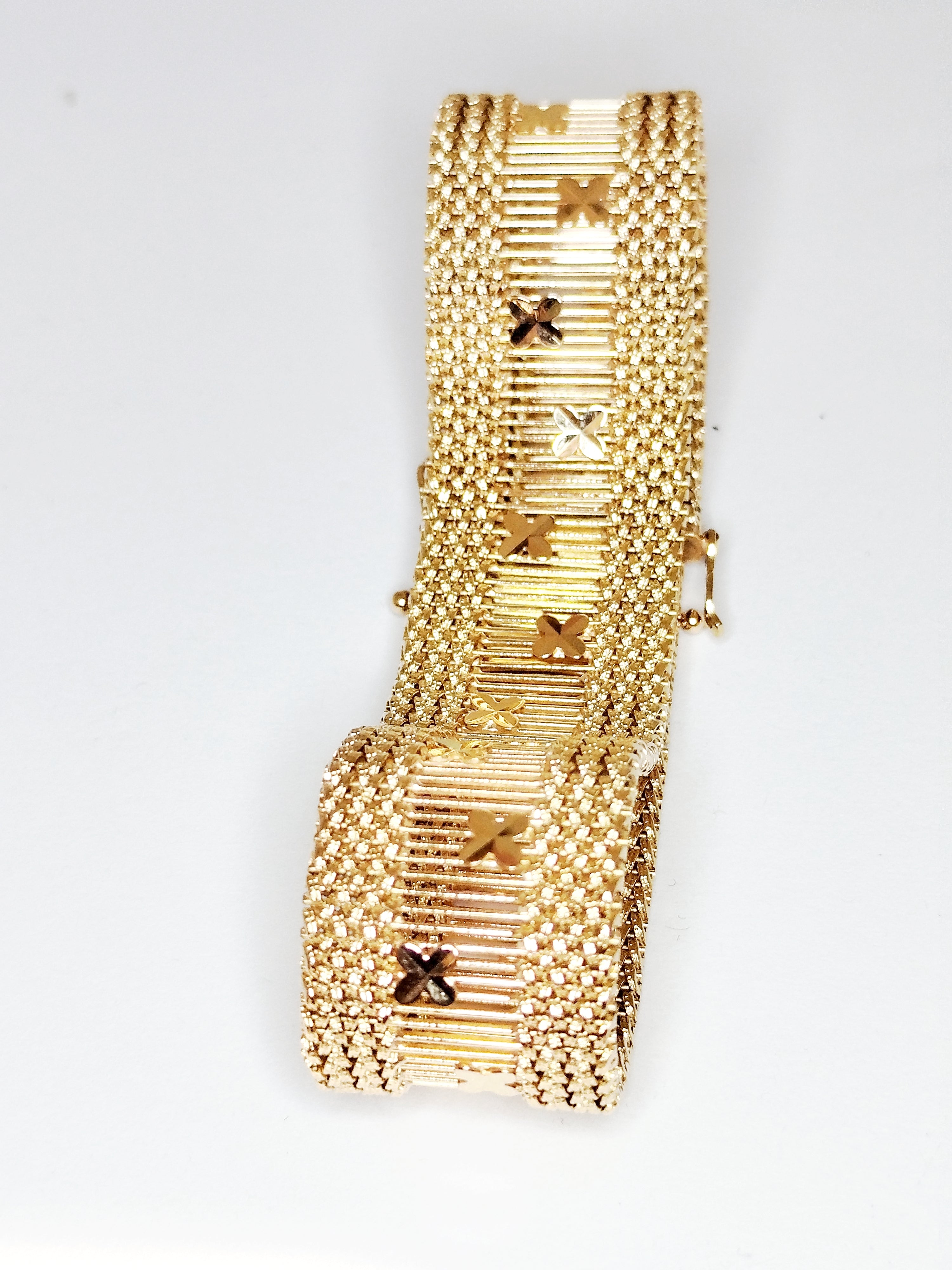 Magnifique bracelet en or jaune 18 carats (750/1000). Poinçonnée tête d'aigle. Pesant 54.17 grammes.Il mesure 21cm de long , 2 cm de largeur et 0,2 cm d'épaisseur.