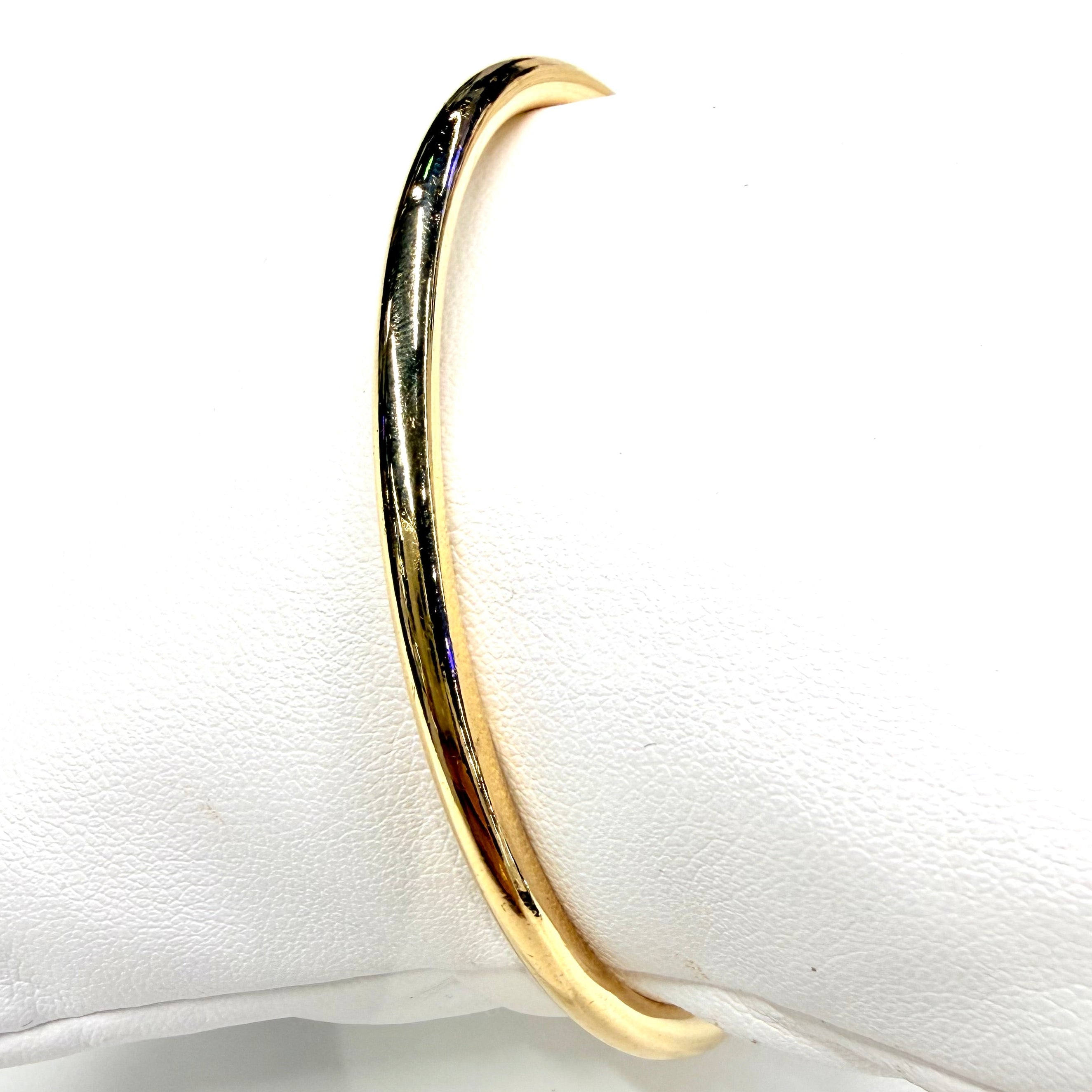 Élégant bracelet jonc en or jaune 750/1000, poinçonné Tête d’Aigle, d’un poids remarquable de 30,44 g. Son design épuré présente un diamètre de 6,5 cm, une largeur de 0,3 mm et une épaisseur de 0,3 cm, avec un fermoir jonc fermé assurant une tenue sûre. Un bijou lumineux et intemporel, idéal pour sublimer un poignet avec élégance.