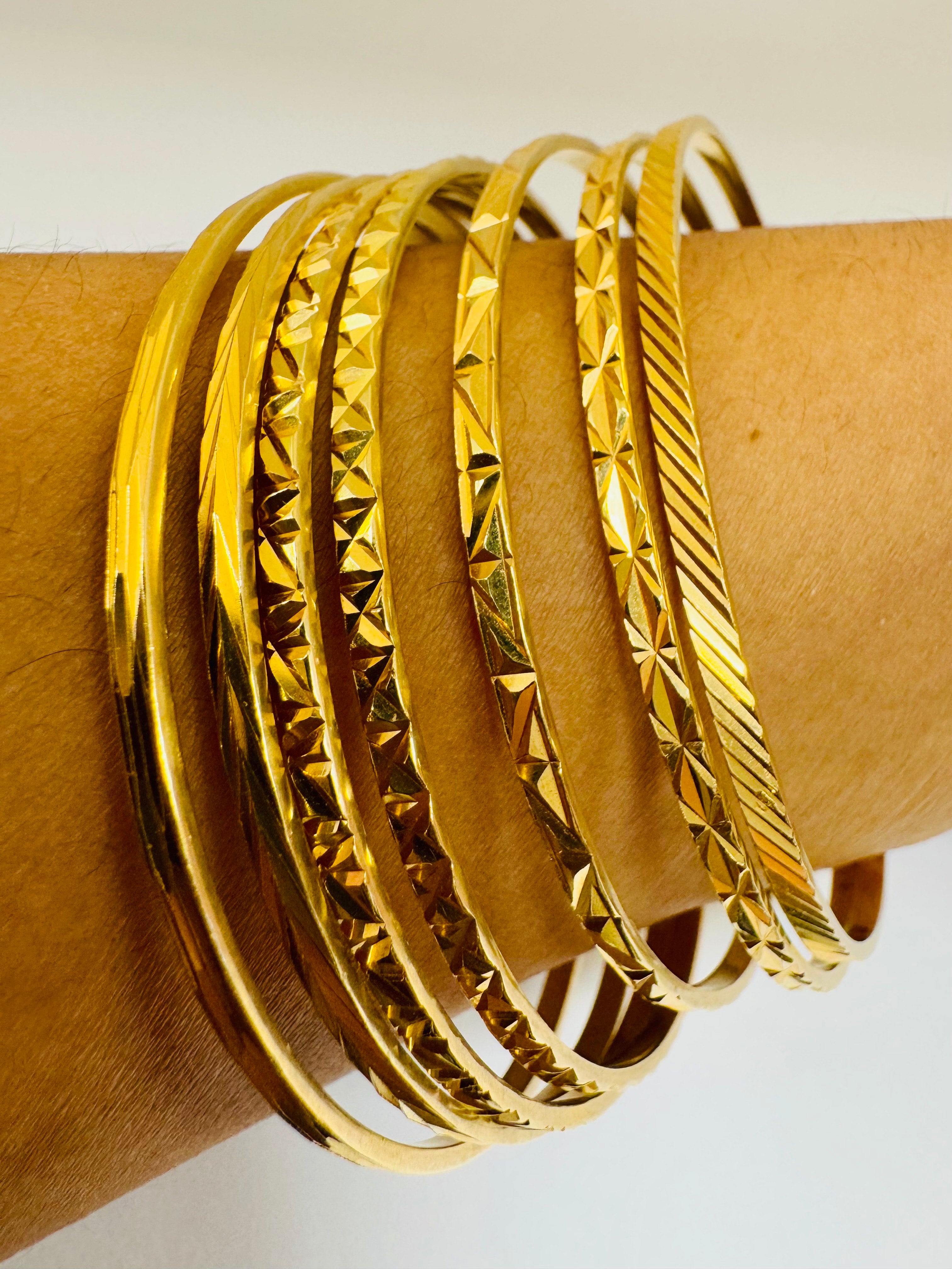 Bracelet de type semainier en or jaune 18 carats (750/1000) se distingue par son style traditionnel et intemporel. Composé de plusieurs anneaux rigides sans fermoir, il mesure 20 cm de longueur, avec une largeur de 3 mm et une épaisseur de 2 mm chacun, pour un poids total de 49,51 grammes. Il est en très bon état général.
