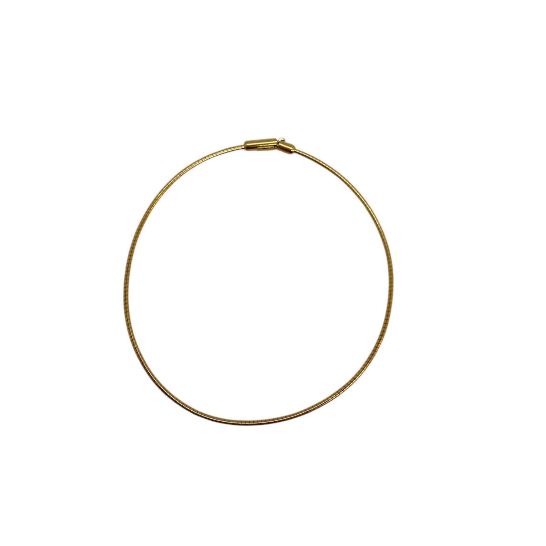 Bracelet jonc en or jaune 18 carats (750/1000) avec maille serpent pèse 3.51 grammes. Il mesure 6 cm de longueur, 1 mm de largeur et 1 mm d'épaisseur, et est doté d'un fermoir clip. Avec le poinçon Tête d'Aigle, il est en très bon état.