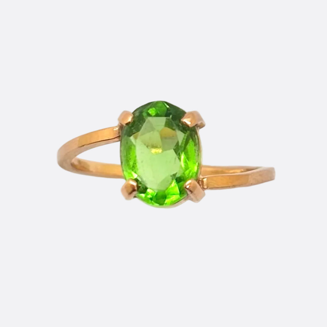 Bague empierrée en or jaune 18 carats (750/1000), ornée d’une grossulaire. D’un poids de 2,16 g et de taille 52, elle allie élégance et confort.