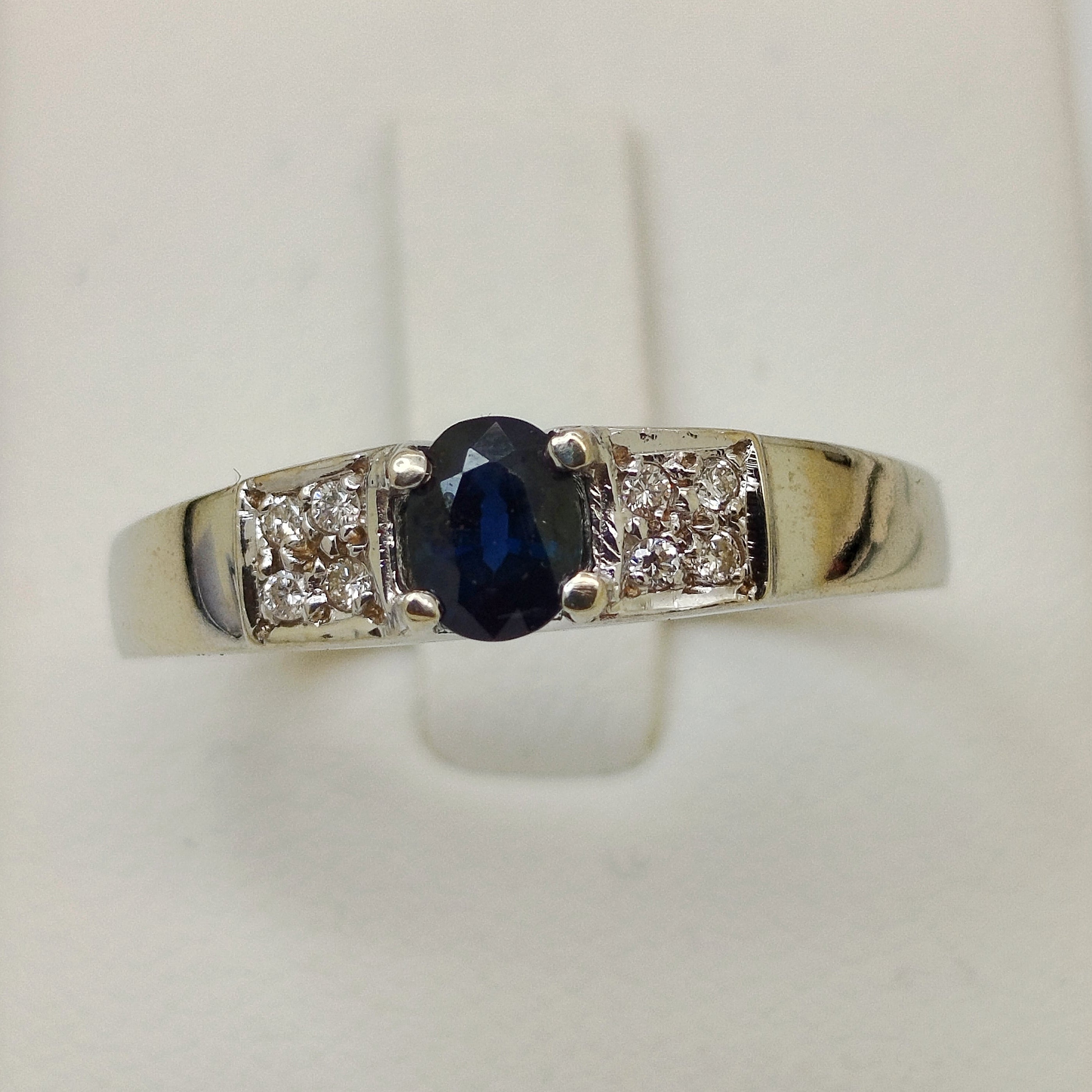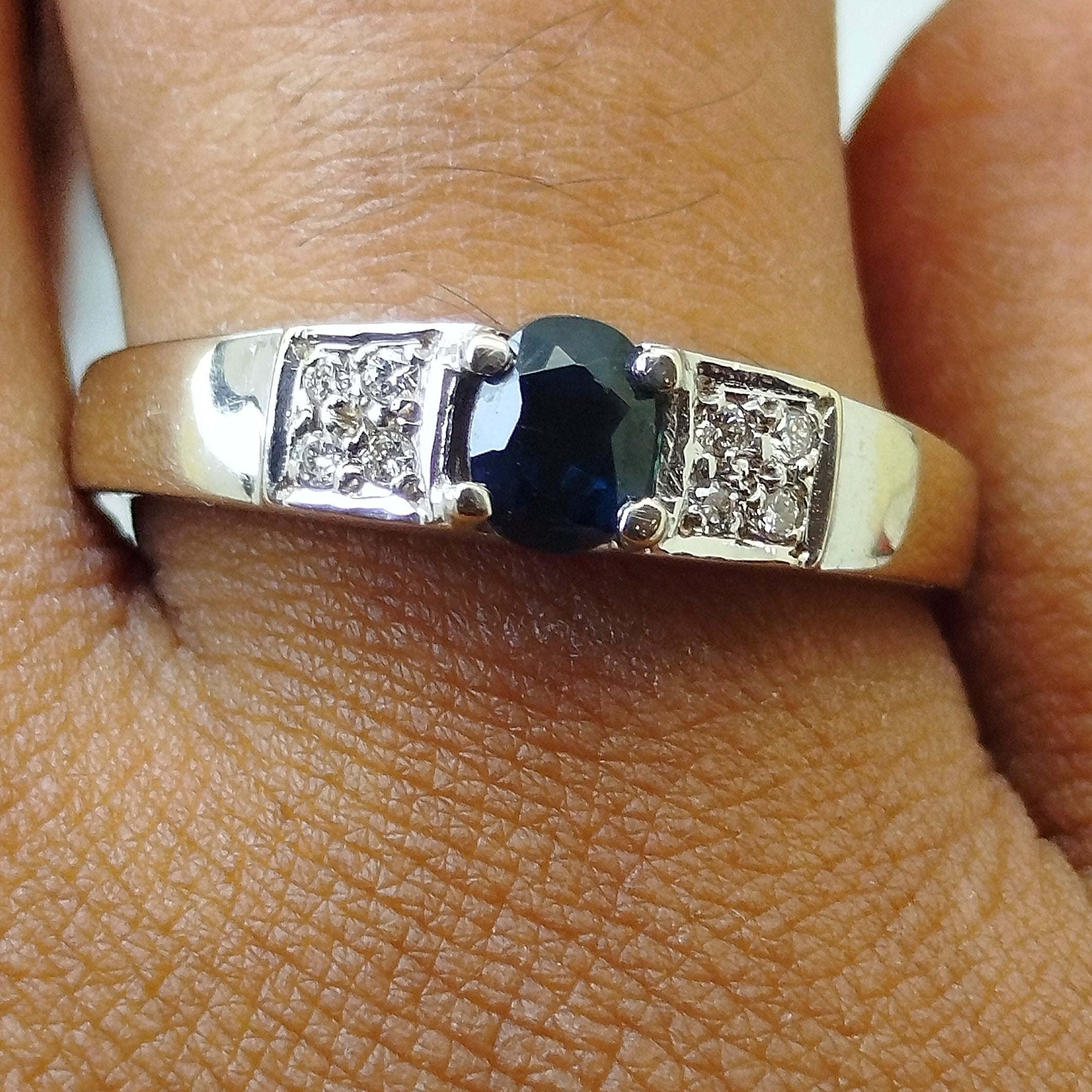 Bague en or blanc 18 carats (750/1000). Poinçonnée 750. Ornée d'un saphir . Pesant 2,09 grammes. Taille 57.
