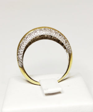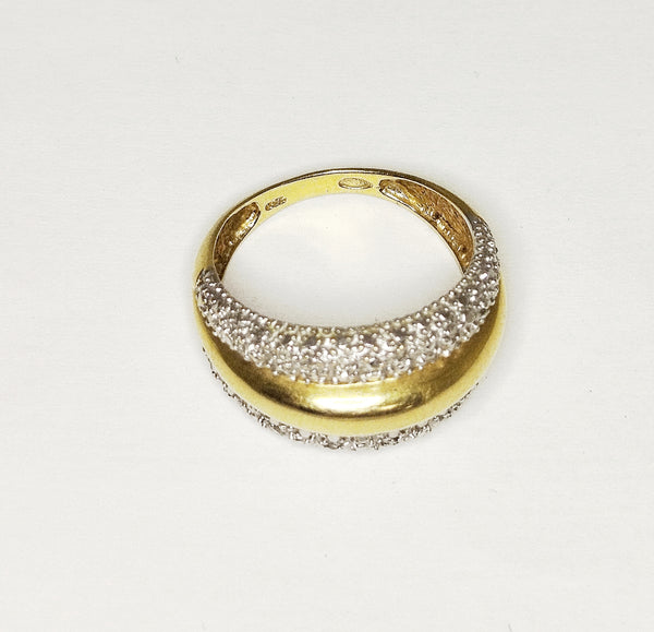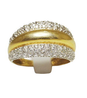 Bague de type jonc en or jaune 750/1000 (18 carats), poinçonnée 750, d’un poids de 4,58 g et de taille 56. Elle est sertie de diamants et se présente en très bon état.