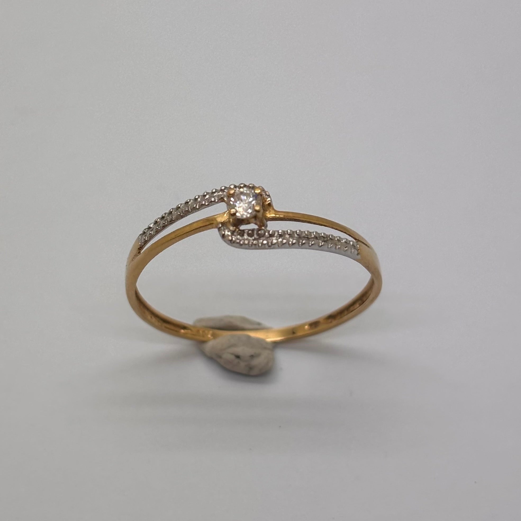 Solitaire en or jaune et gris 18K, taille 53, poids 3,20 g, serti d’un diamant unique.