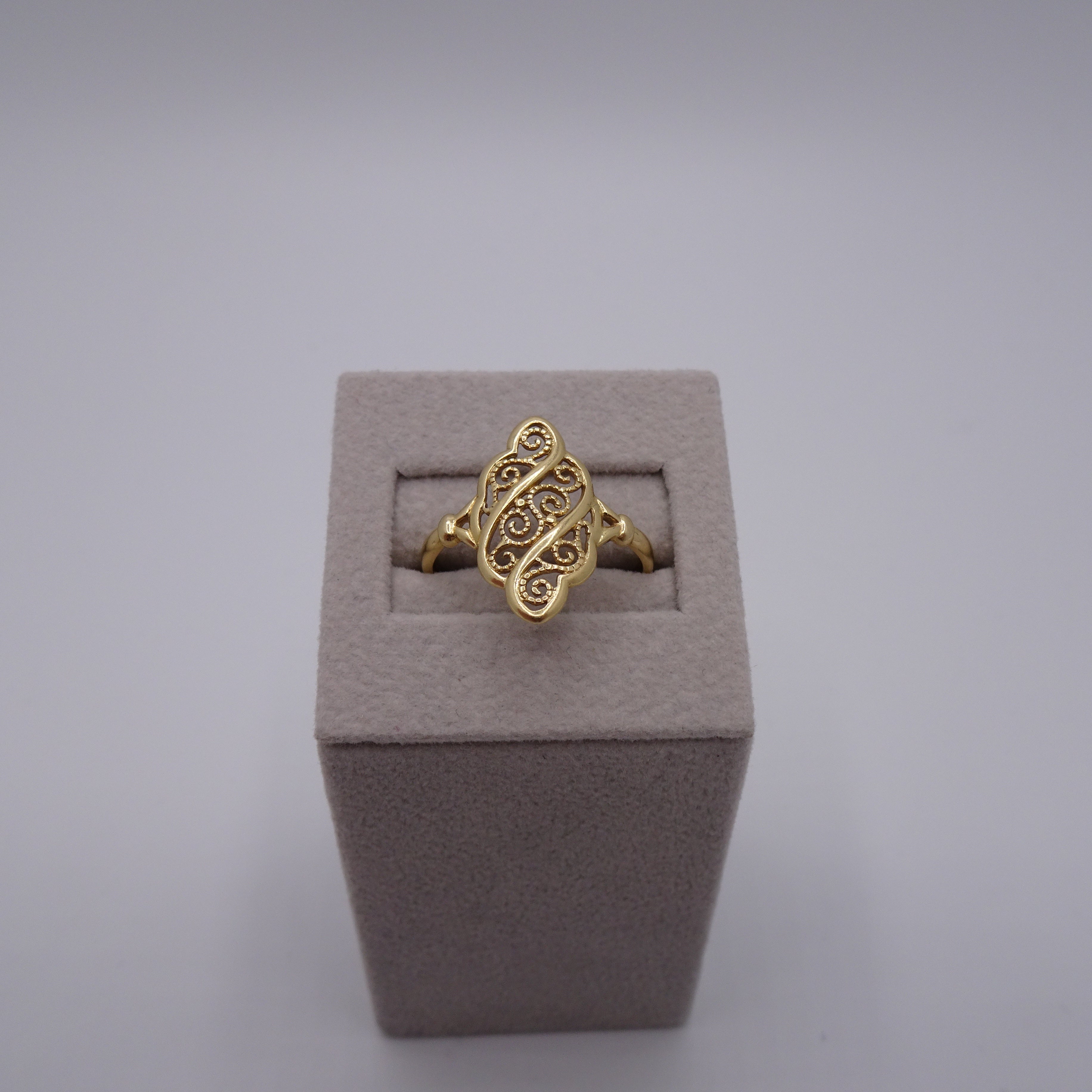 Bague ancienne en or jaune 18 carats (750/1000), pleine de charme et d’élégance. Elle pèse 1,89 g, est de taille 57 et porte le poinçon 750. Ce modèle sans pierres séduit par la finesse de son travail et son allure intemporelle. La bague est en très bon état, témoignant d’une belle conservation pour une pièce de caractère.