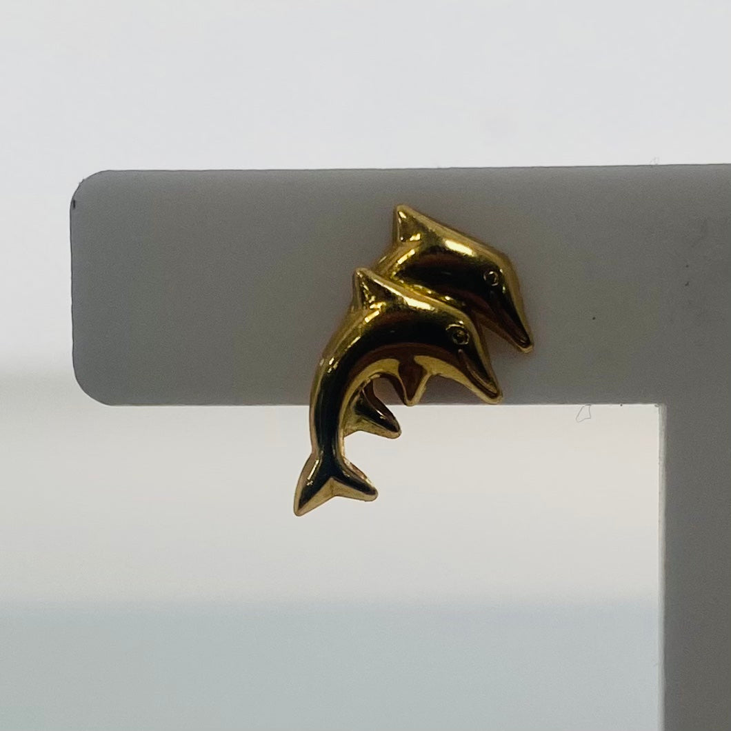 Petite boucles d’oreille dauphin en or jaune 18 carats