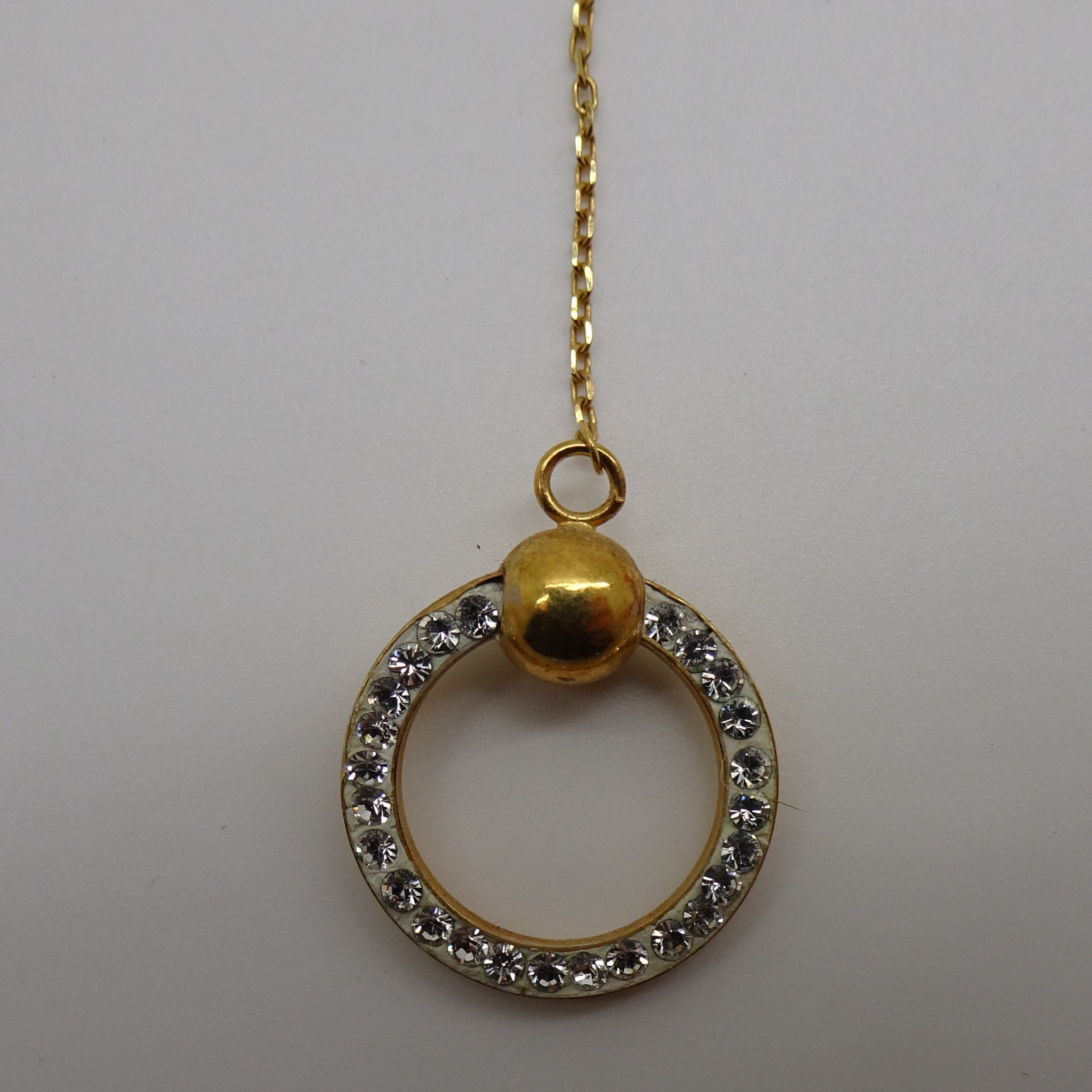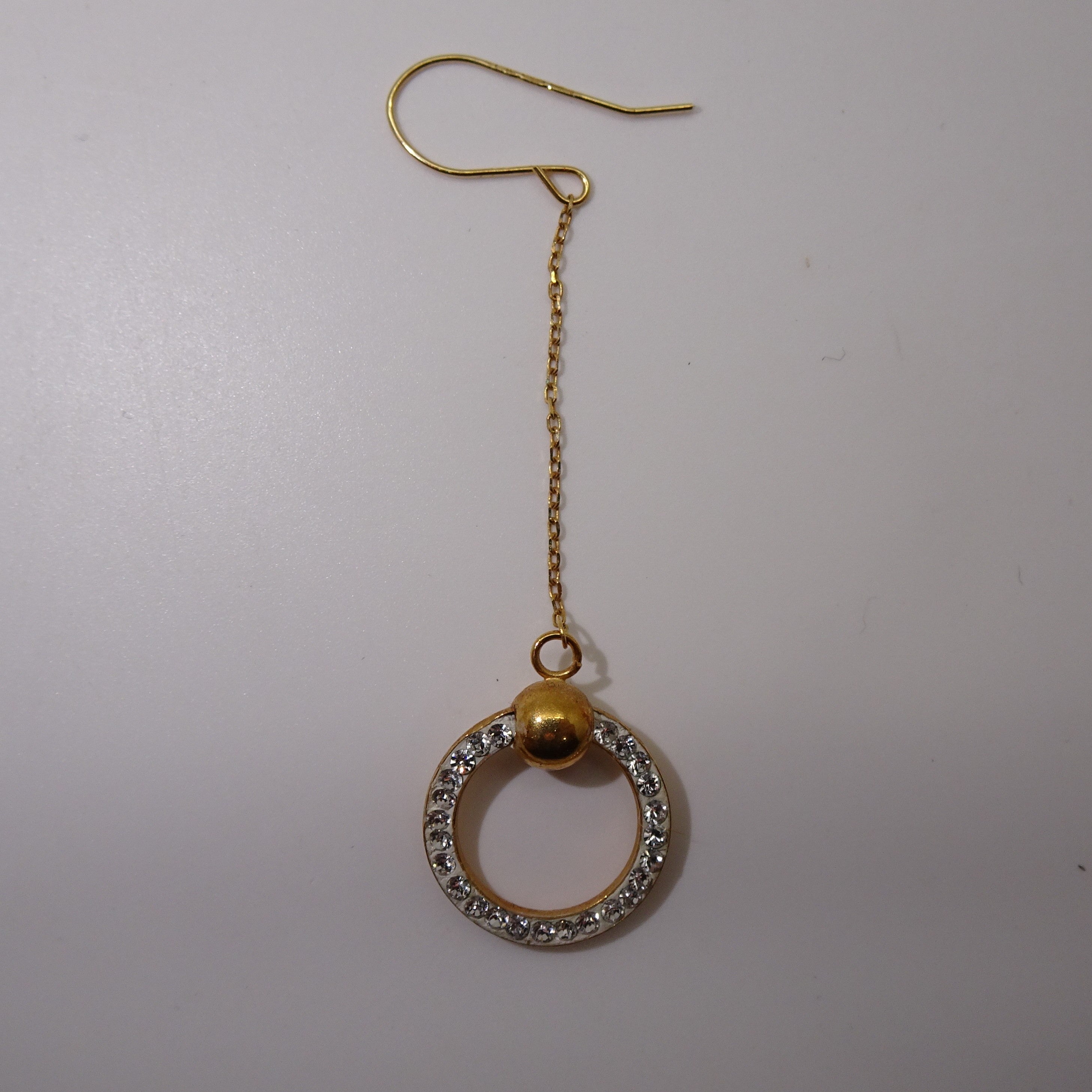Sublimez votre style avec cette somptueuse boucle d'oreille en or 18 carats (750/1000), un véritable bijou d'élégance et de finesse. Son design raffiné associe une délicate chaîne dorée à un pendentif circulaire orné de pierres scintillantes, capturant la lumière avec éclat.