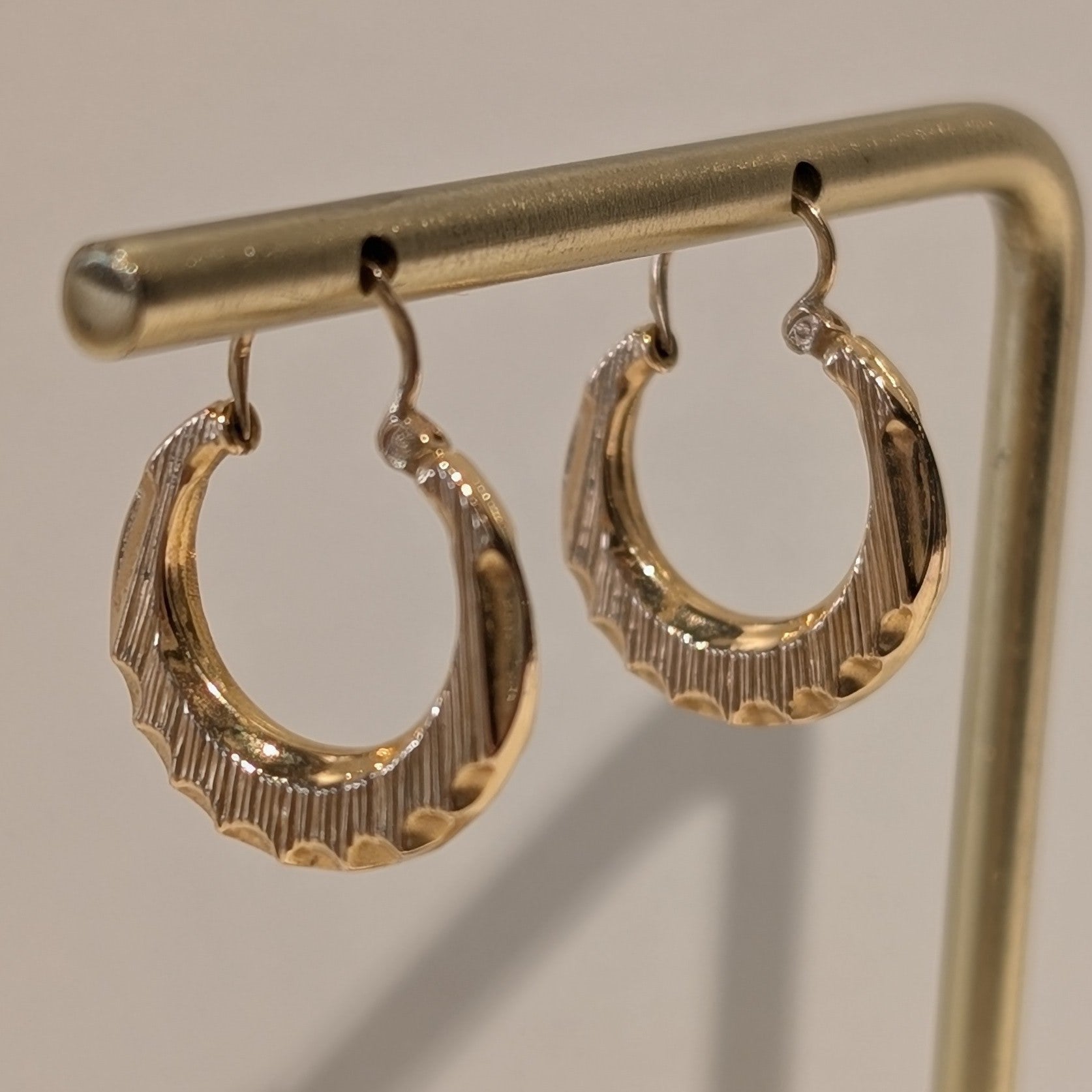 Ce modèle en or jaune 750/1000, doté d’un fermoir à cliquet et poinçonné tête d’aigle, présente un poids de 1,98 g pour des dimensions de 2 × 1,5 × 0,3 cm, sans pierres et en bon état.