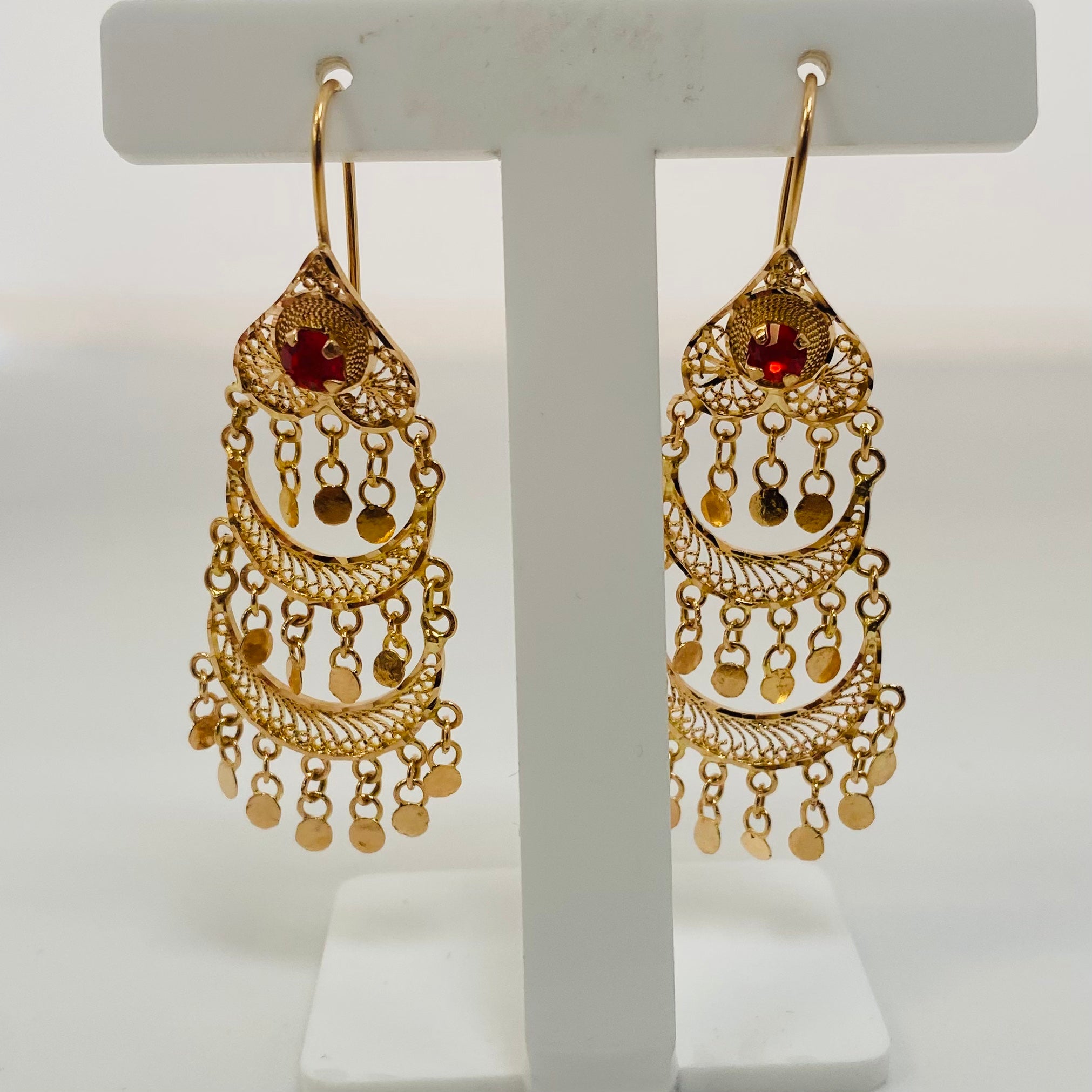 Magnifique boucles d’oreilles en or jaune avec 2 rubis