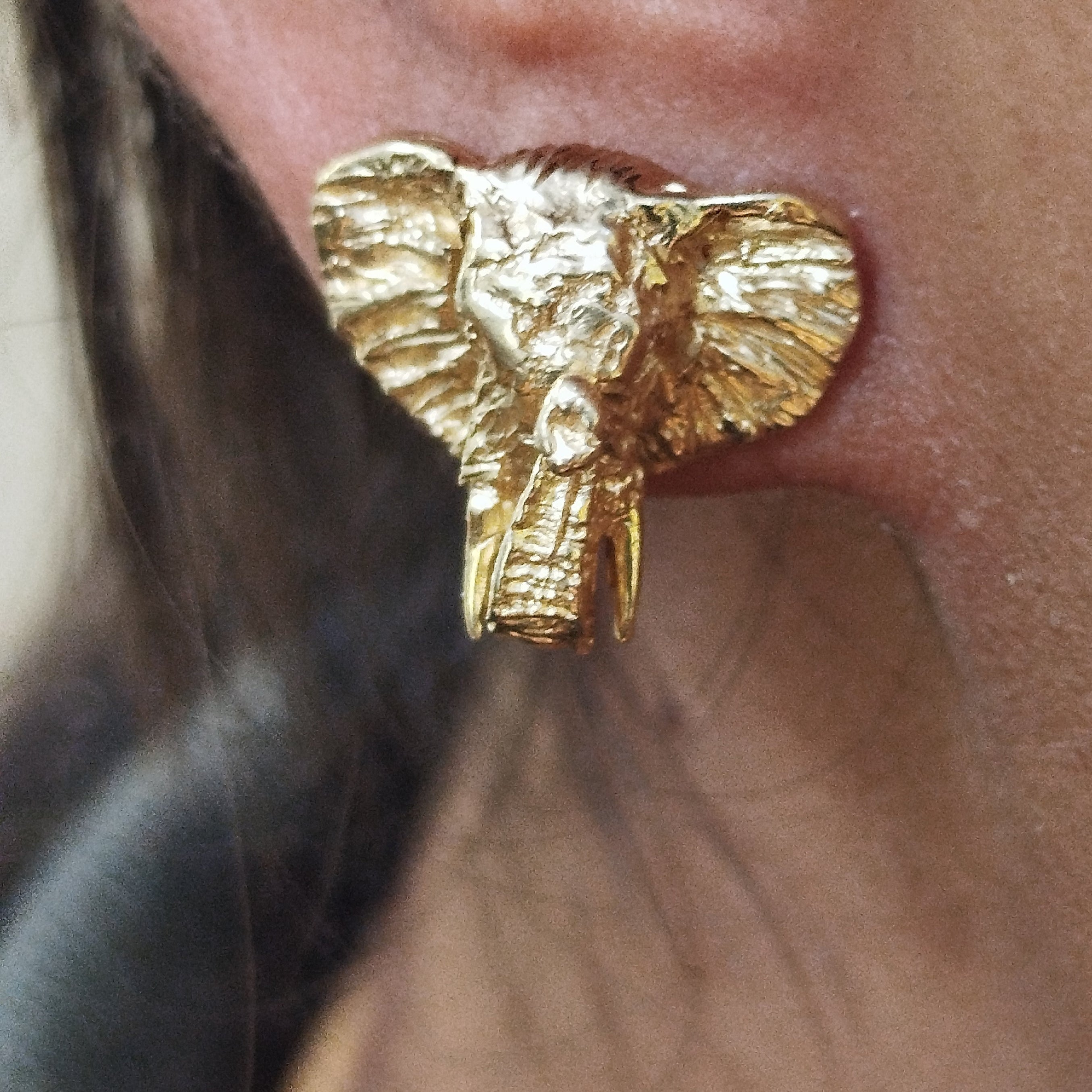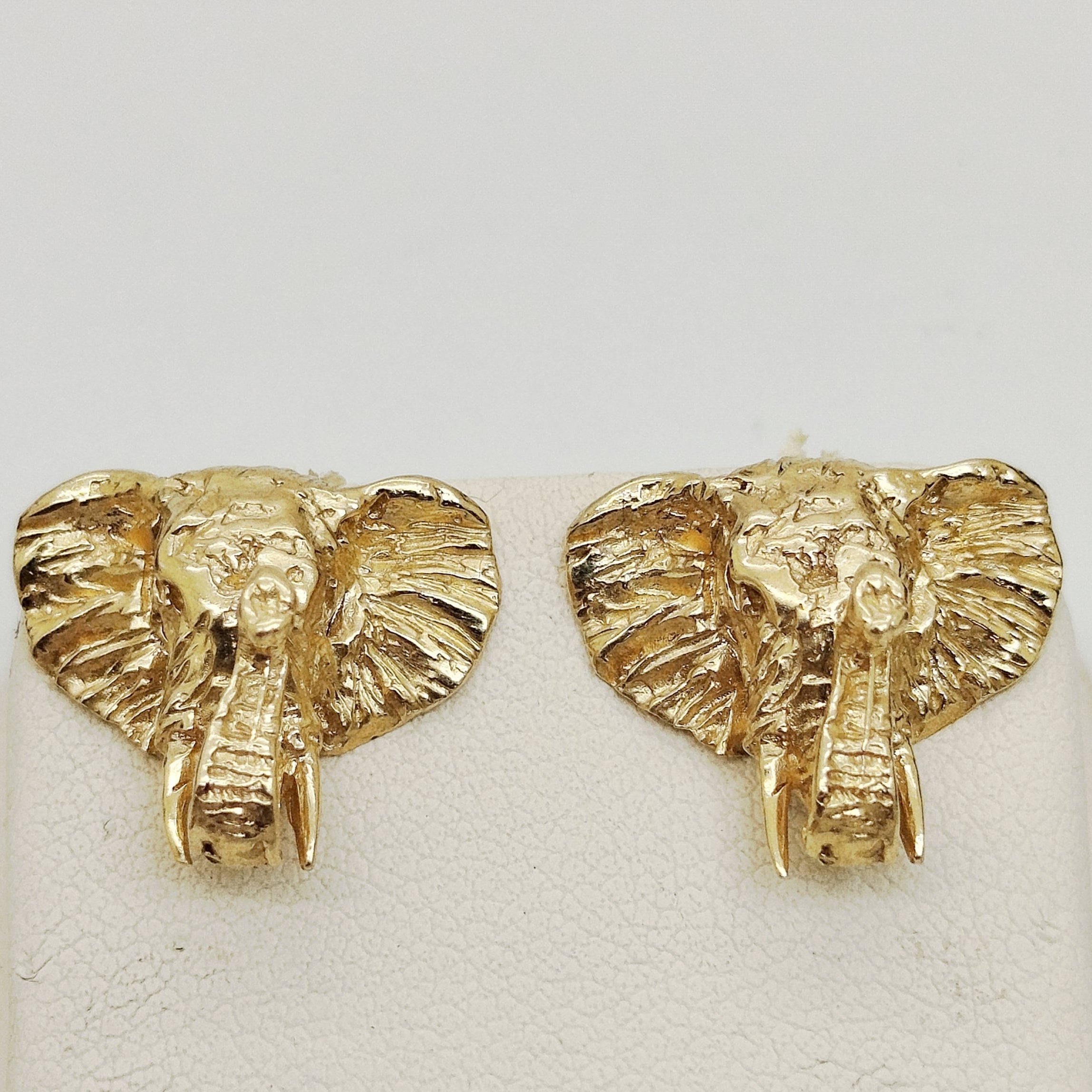 Boucles d’oreilles clou en or jaune 14 carats, poinçon 14K, fermoir poussettes. Hauteur 1,3 cm, largeur 1,5 cm, épaisseur 0,3 cm, poids 7,34 g, sans pierres, en très bon état.