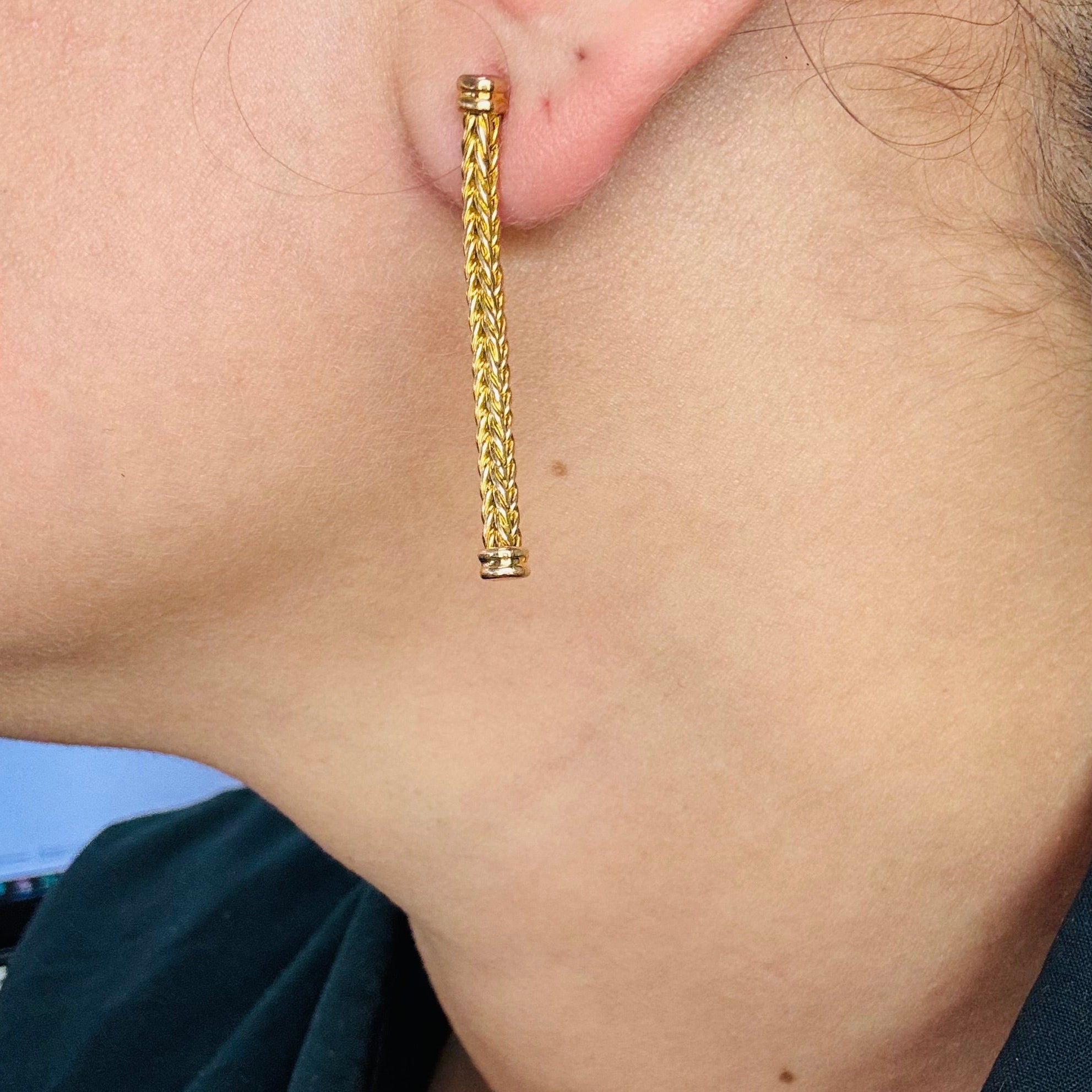 Elles présentent un fermoir en poussettes et mesurent 3.7 CM de hauteur, 2 MM de largeur et d'épaisseur et sont en parfait état.