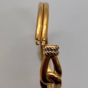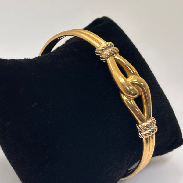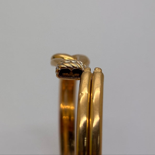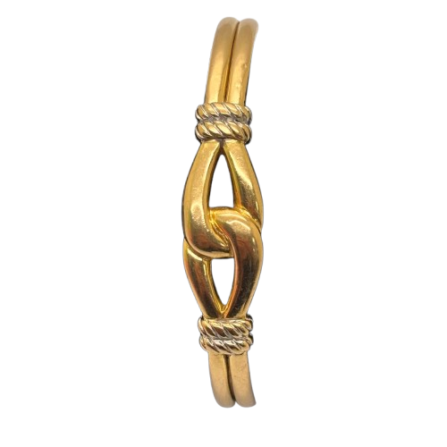 Bracelet jonc en or jaune 18 carats (750/1000), poinçonné à la tête d’aigle, il pèse 12.99 grammes, mesure 18 CM de long sur 6.3 CM de large, avec une épaisseur de 2.8 MM.