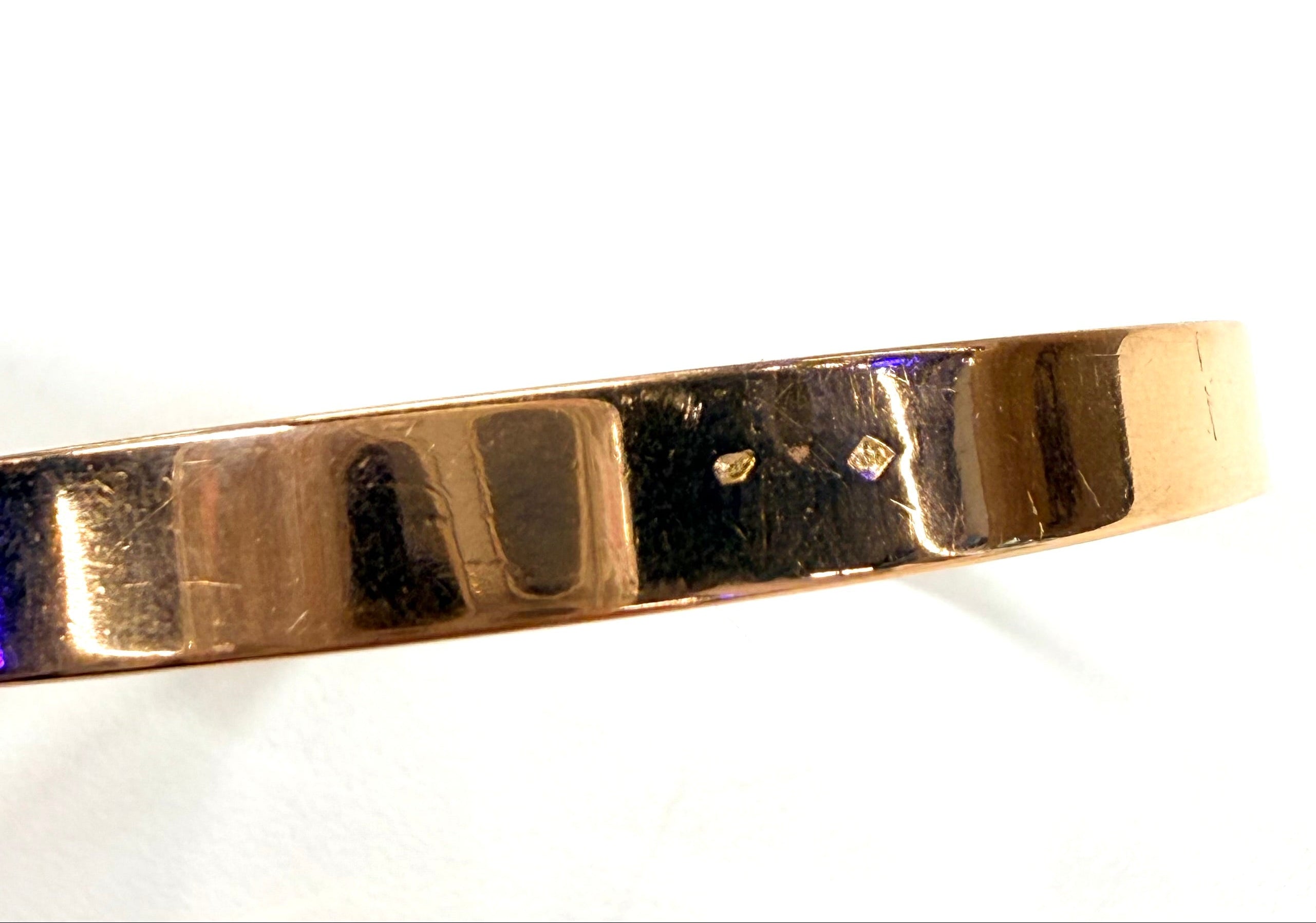 Bracelet jonc plat fermé en or jaune 18K, diamètre 6,5 cm, poids 24 g. Poinçon tête d’aigle (750/1000), fermoir fermé. Largeur 0,6 cm, épaisseur 0,1 cm. En très bon état, un bijou élégant, discret et raffiné.