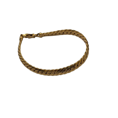 Bracelet en or jaune 18 carats (750/1000), poinçonné à la tête d’aigle, présente une maille anglaise finement travaillée et un fermoir à mousqueton.