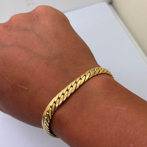 Il pèse 14.45 grammes, mesure 19 CM de long sur 0.6 CM de large, avec une épaisseur de 1.1 MM, ne contient aucune pierre et est en très bon état.