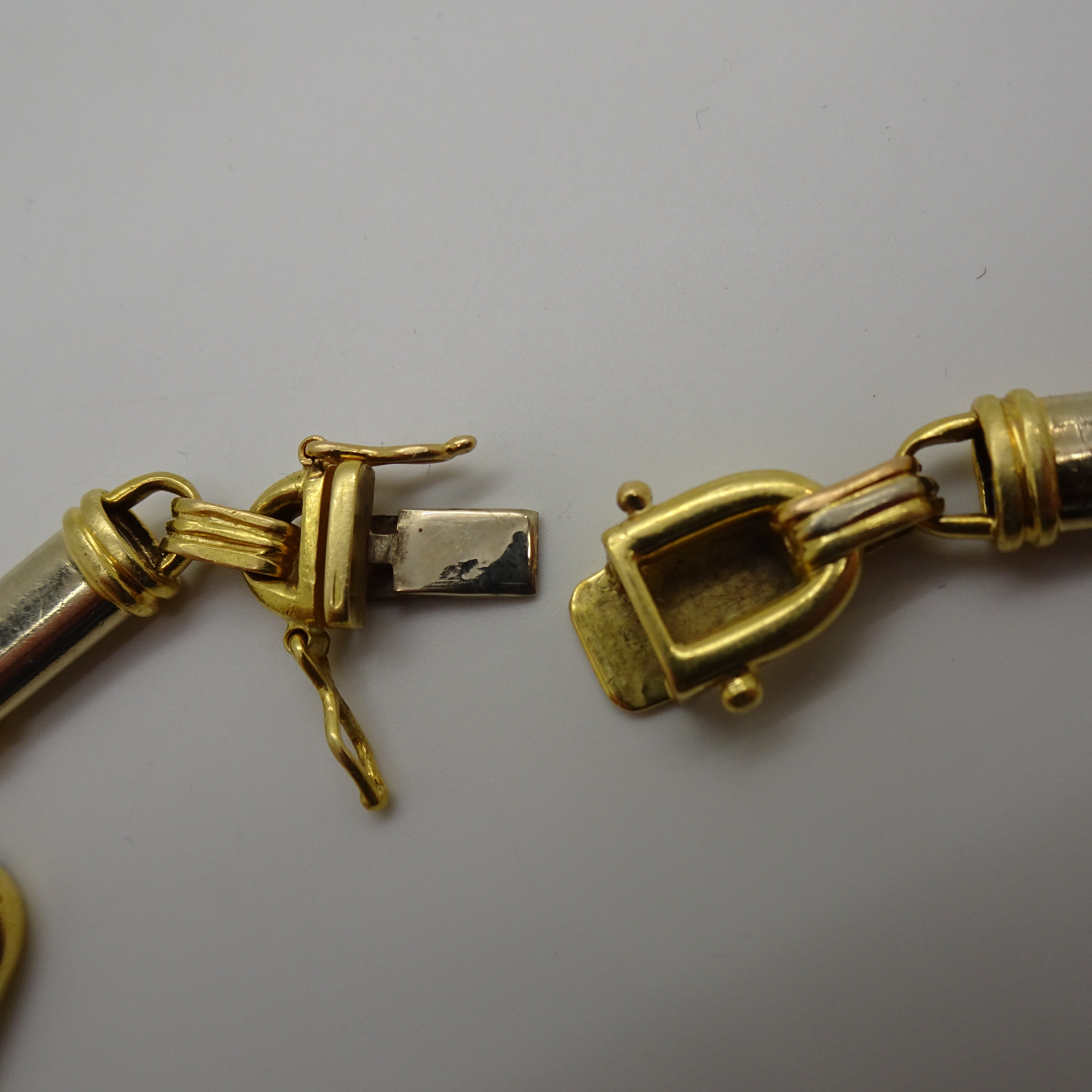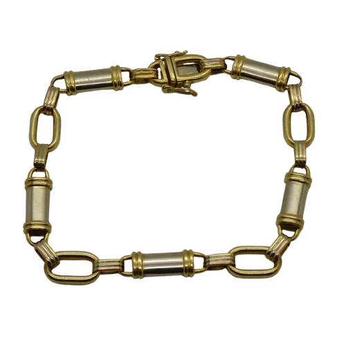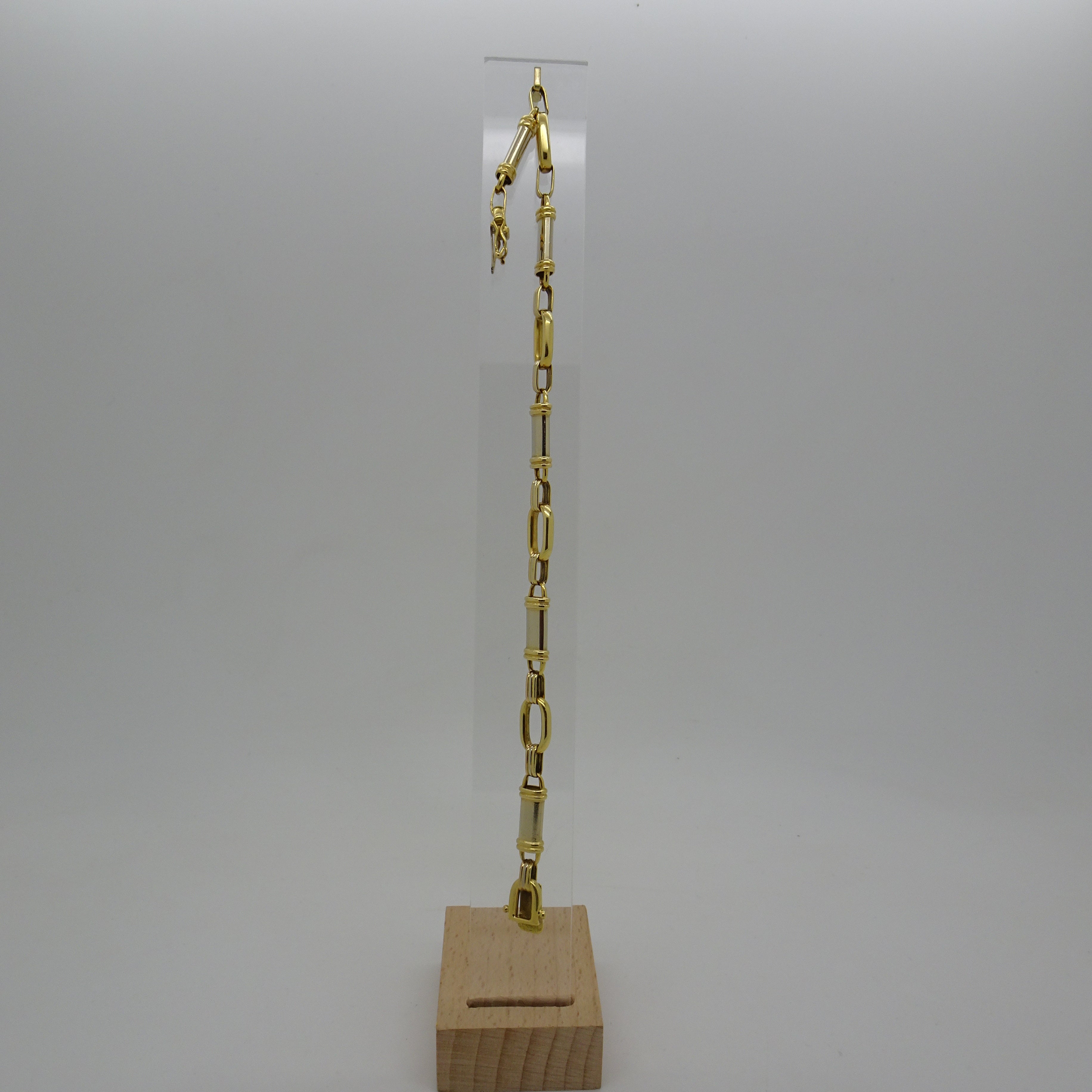 Symbole de prestige et de raffinement, ce bracelet en or 750/1000 (18 carats) de 27,78 grammes s’inspire de l’histoire de la joaillerie, où l’or a toujours été un métal convoité, signe de pouvoir et d’élégance. Depuis l’Antiquité, les civilisations égyptiennes, grecques et romaines ornaient leurs poignets de bracelets en or, témoins de leur rang et de leur goût pour l’artisanat d’exception. Aujourd’hui encore, ce bijou perpétue cette tradition, offrant à son porteur une touche intemporelle de luxe et de distinction.