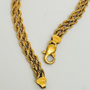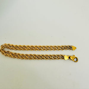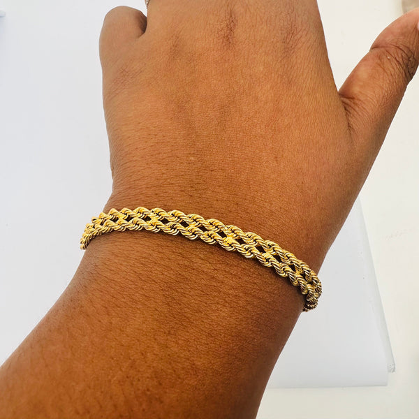 Bracelet à maillons en or jaune 18 carats (750/1000), poinçonné Tête d’Aigle, avec une maille corde à l’aspect texturé et classique. Il mesure 19,5 cm de longueur, 6 mm de largeur et 2 mm d’épaisseur, et se ferme grâce à un fermoir mousqueton solide.