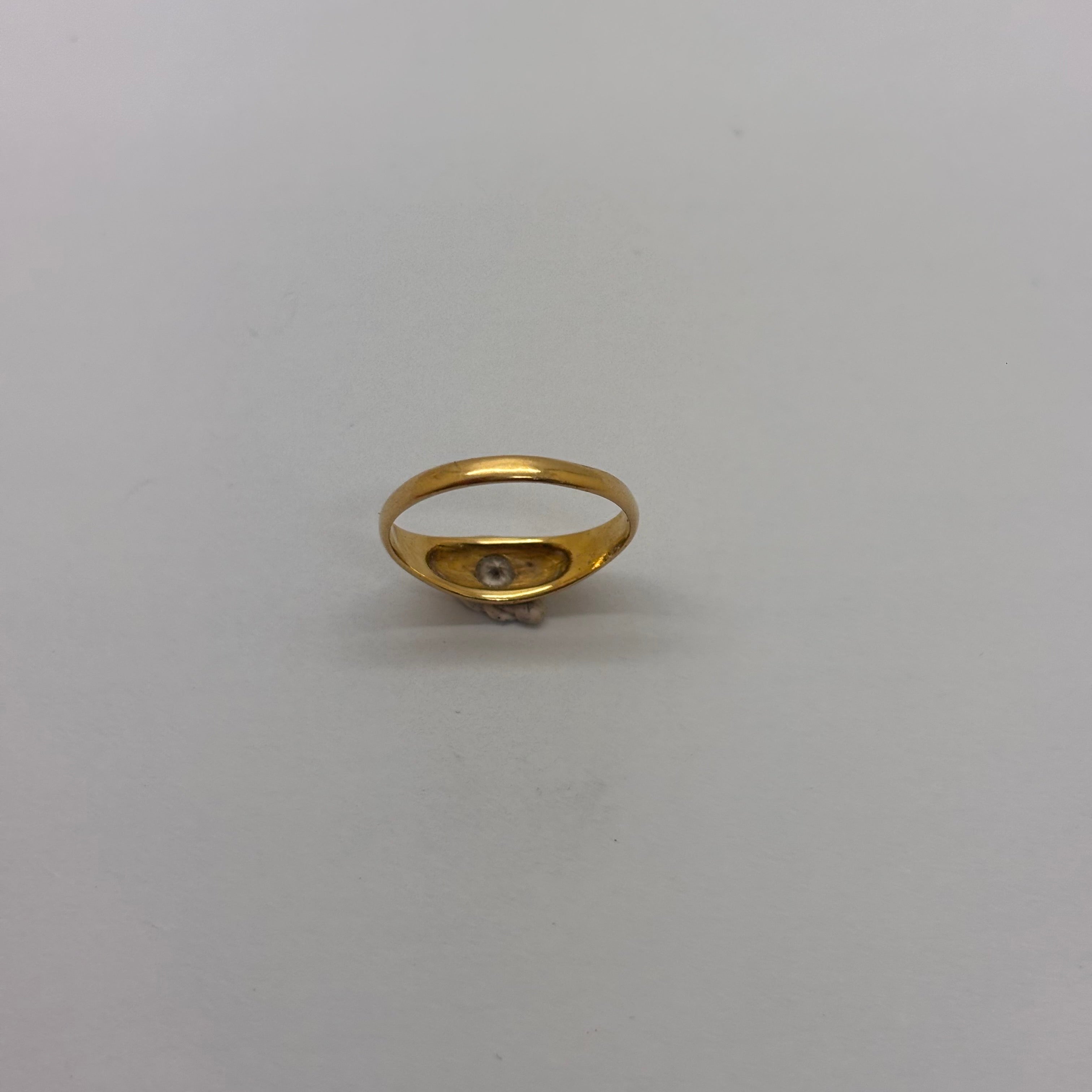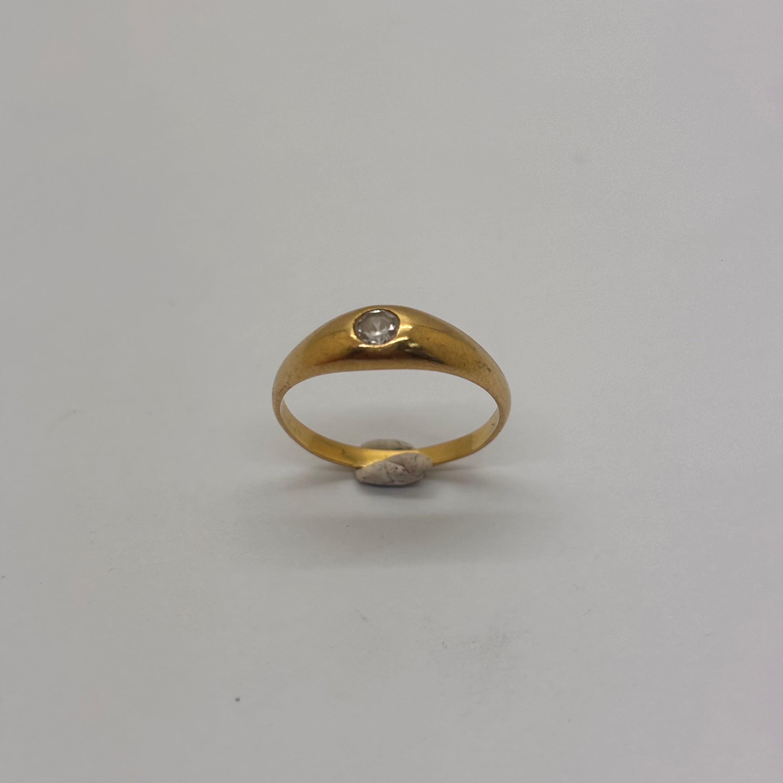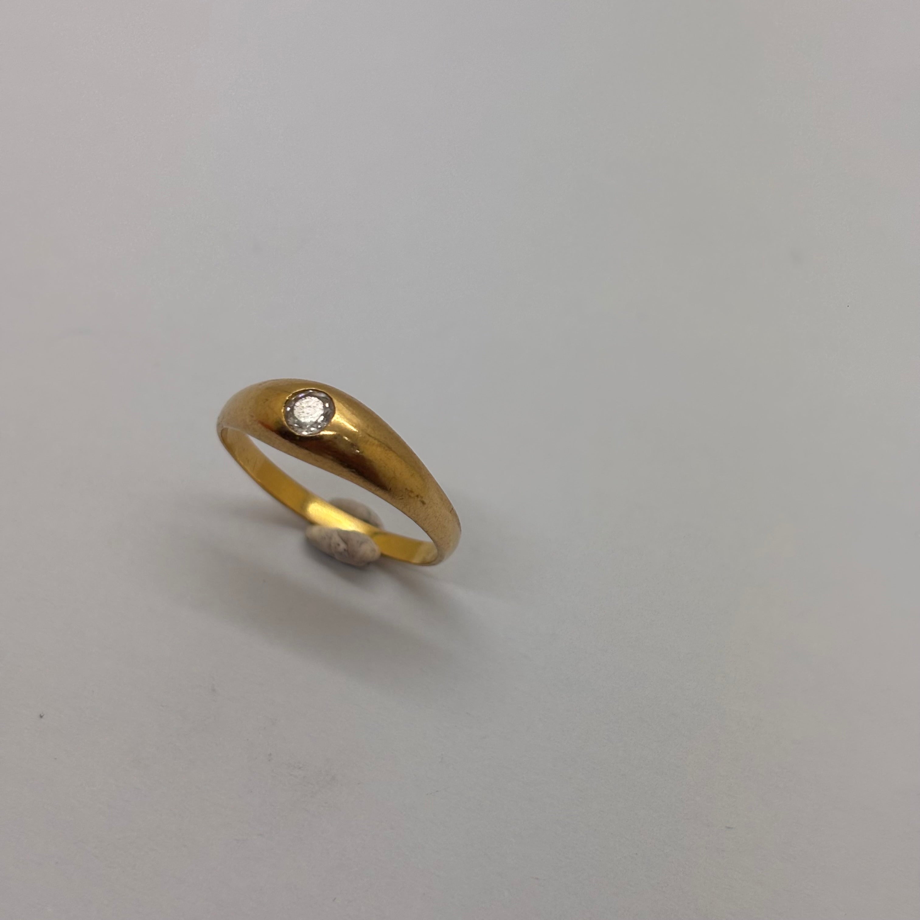 Chevalière en or jaune 18 carats (750/1000), sans poinçon. Poids : 1,82 g, taille : 50. Elle comporte 1 pierre en oxyde de zirconium. Bon état.