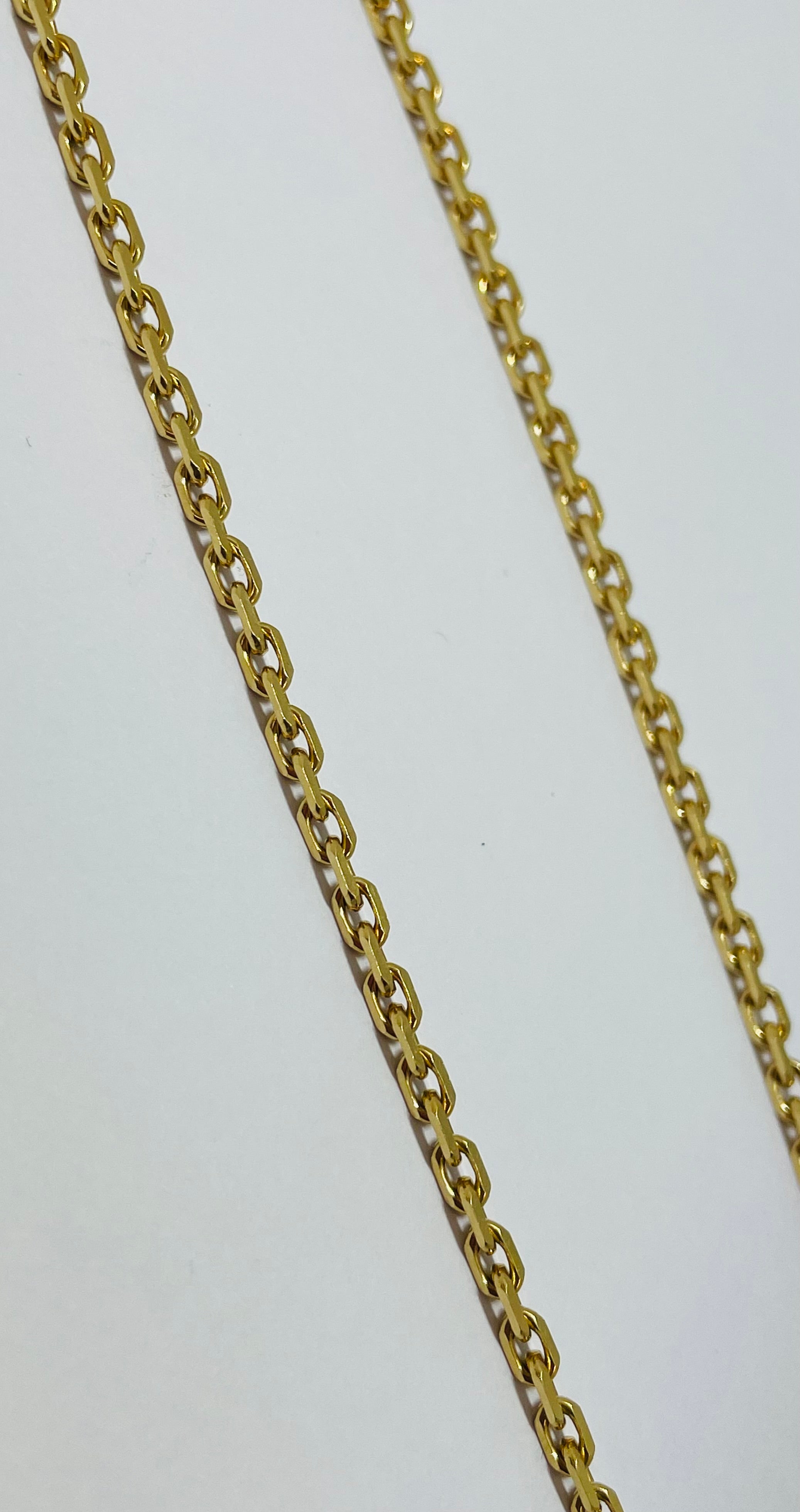 Collier matinée en maille forçat en or jaune 18 carats, poinçon 750, d’un poids de 19,60 g, long de 60 cm, doté d’un fermoir mousqueton.