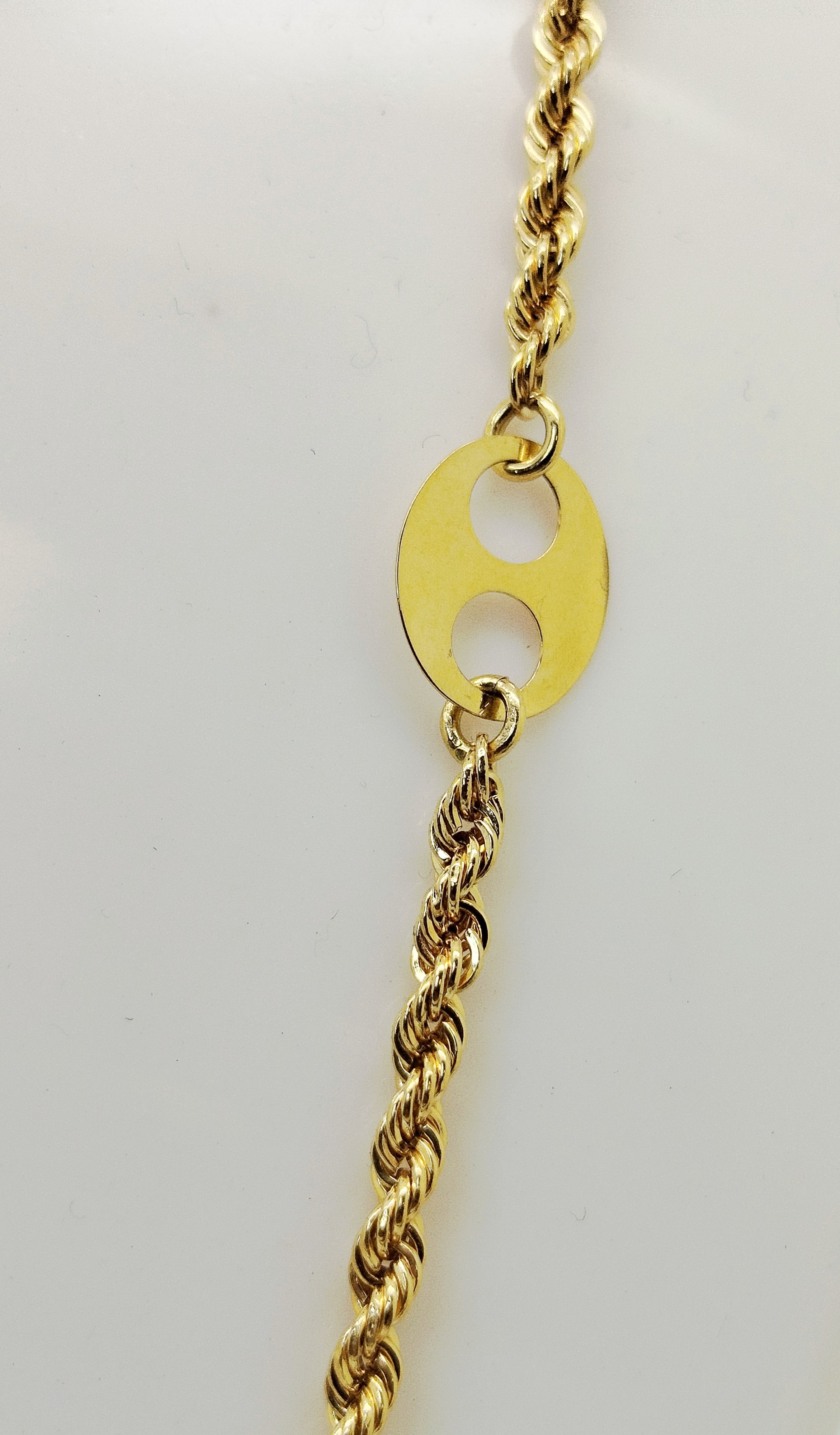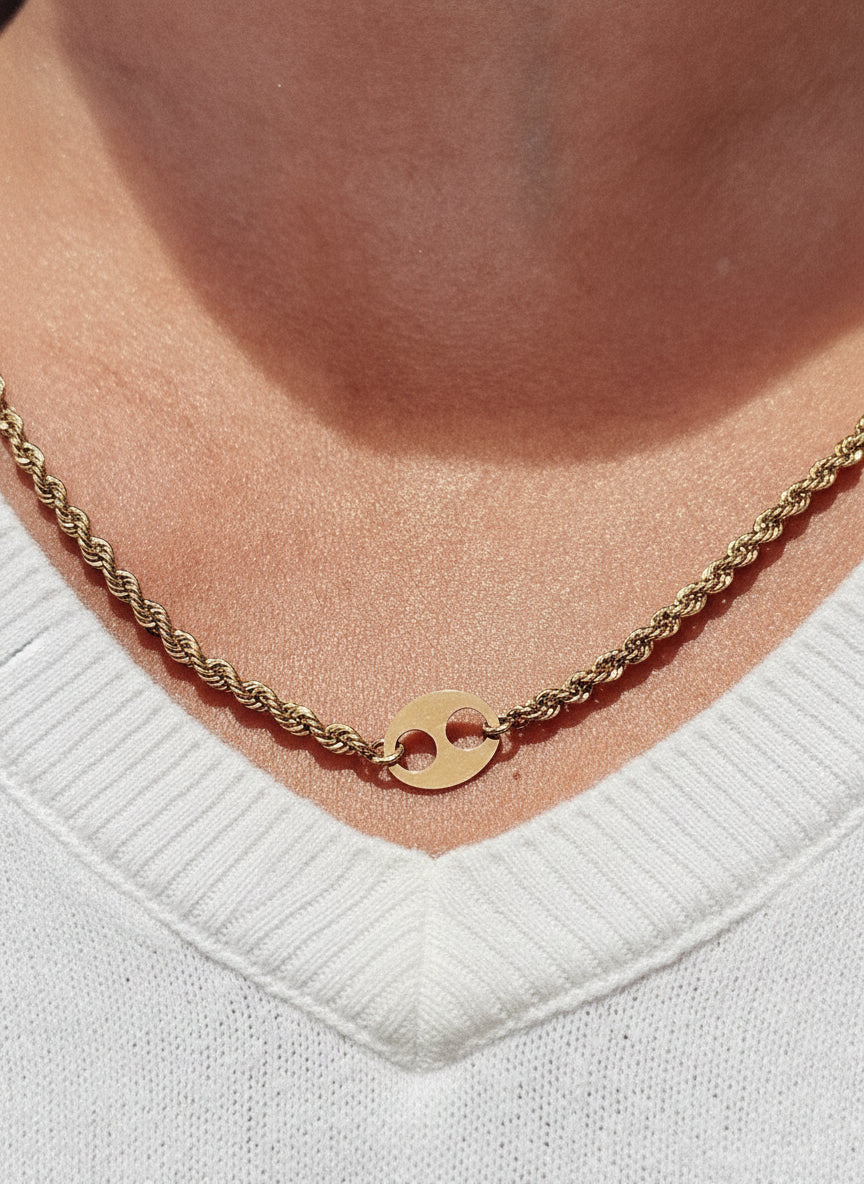Collier princesse en or jaune 750/1000 (5,24 g), maille torsadée fine avec fermoir mousqueton. Longueur 45 cm, largeur et épaisseur 0,2 cm, en bon état, élégant et facile à porter.