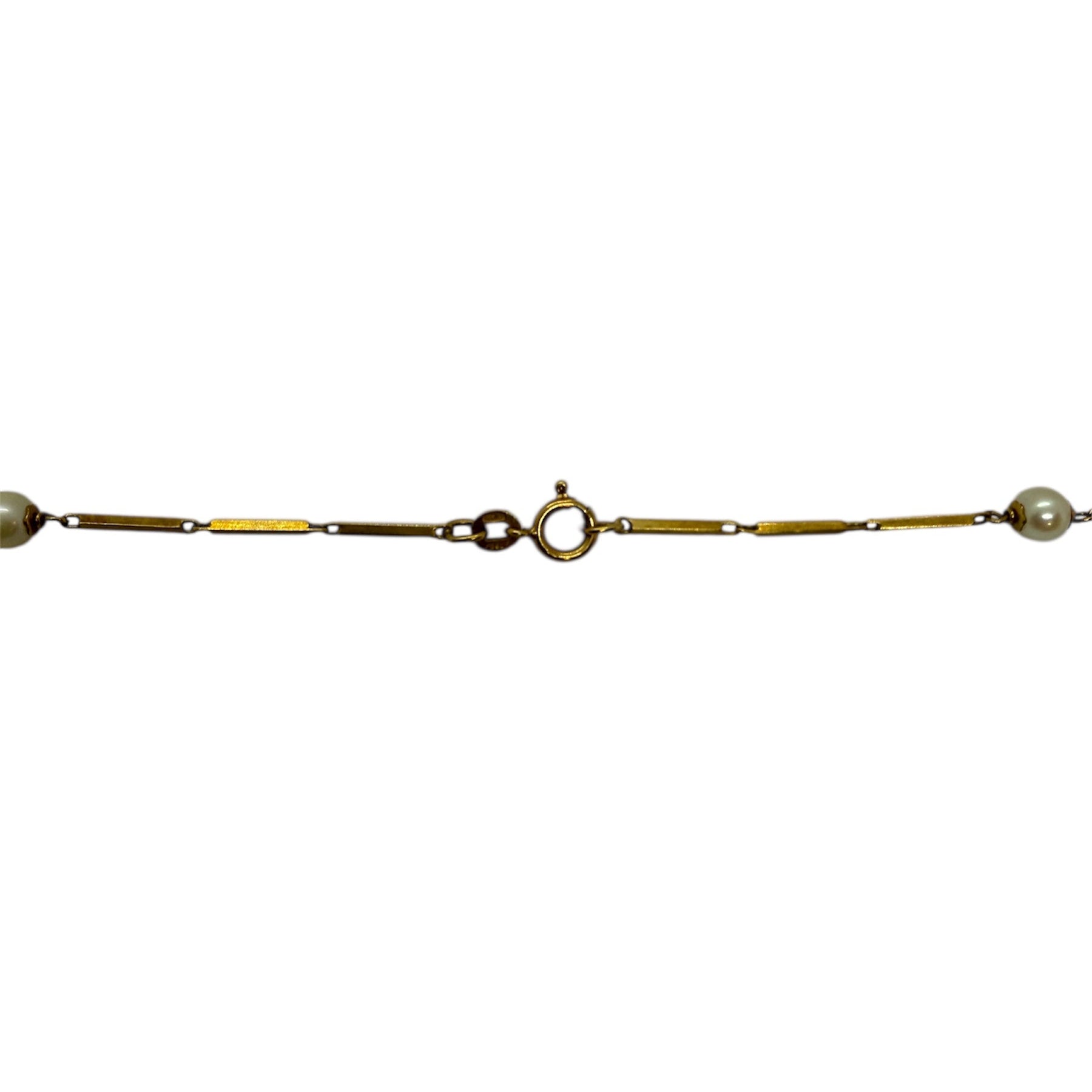 Sautoir en or jaune 750/1000, maille fantaisie, d’un poids de 16,88 g et d’une longueur de 80 cm. Largeur 1 mm, épaisseur 5 mm, fermoir anneau ressort, poinçon 750. Orné de 17 perles, il est proposé en très bon état, offrant un style élégant et raffiné.