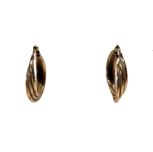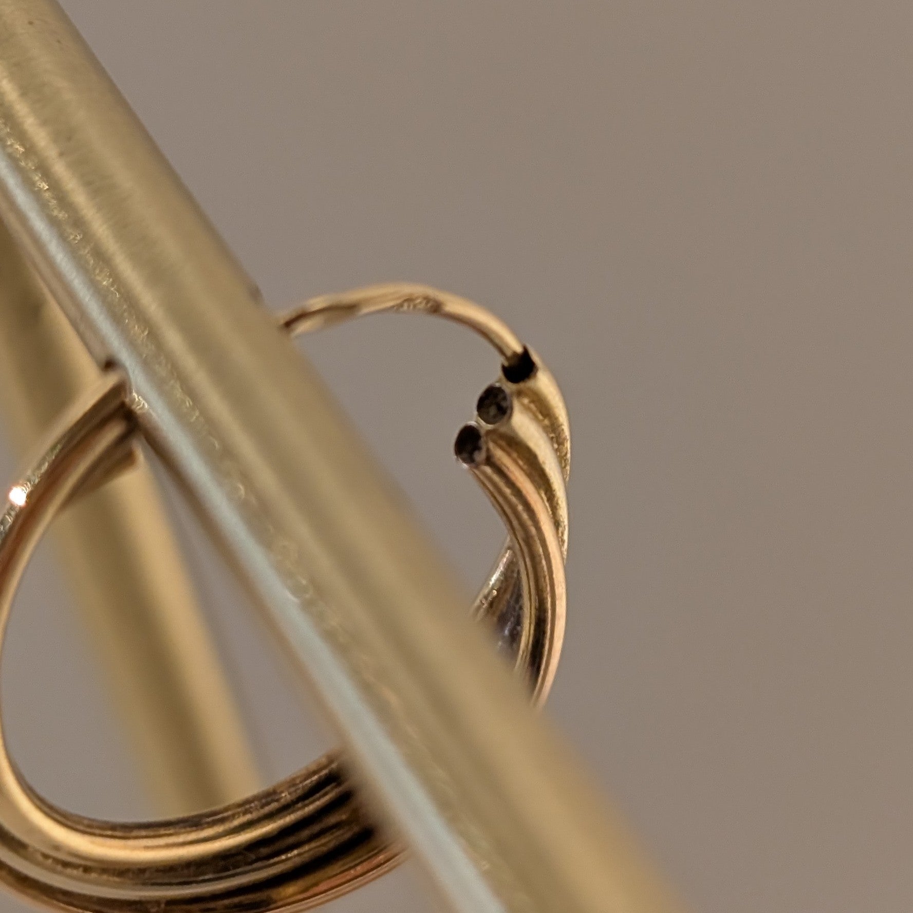 Boucles d’oreilles créoles et demi-créoles en or jaune 18 carats (750/1000), fermoir créoles. Poinçon Tête d’Aigle. Poids : 1,16 g. Hauteur : 1,5 cm, largeur : 1,5 cm, épaisseur : 0,2 cm. État : bon état.
