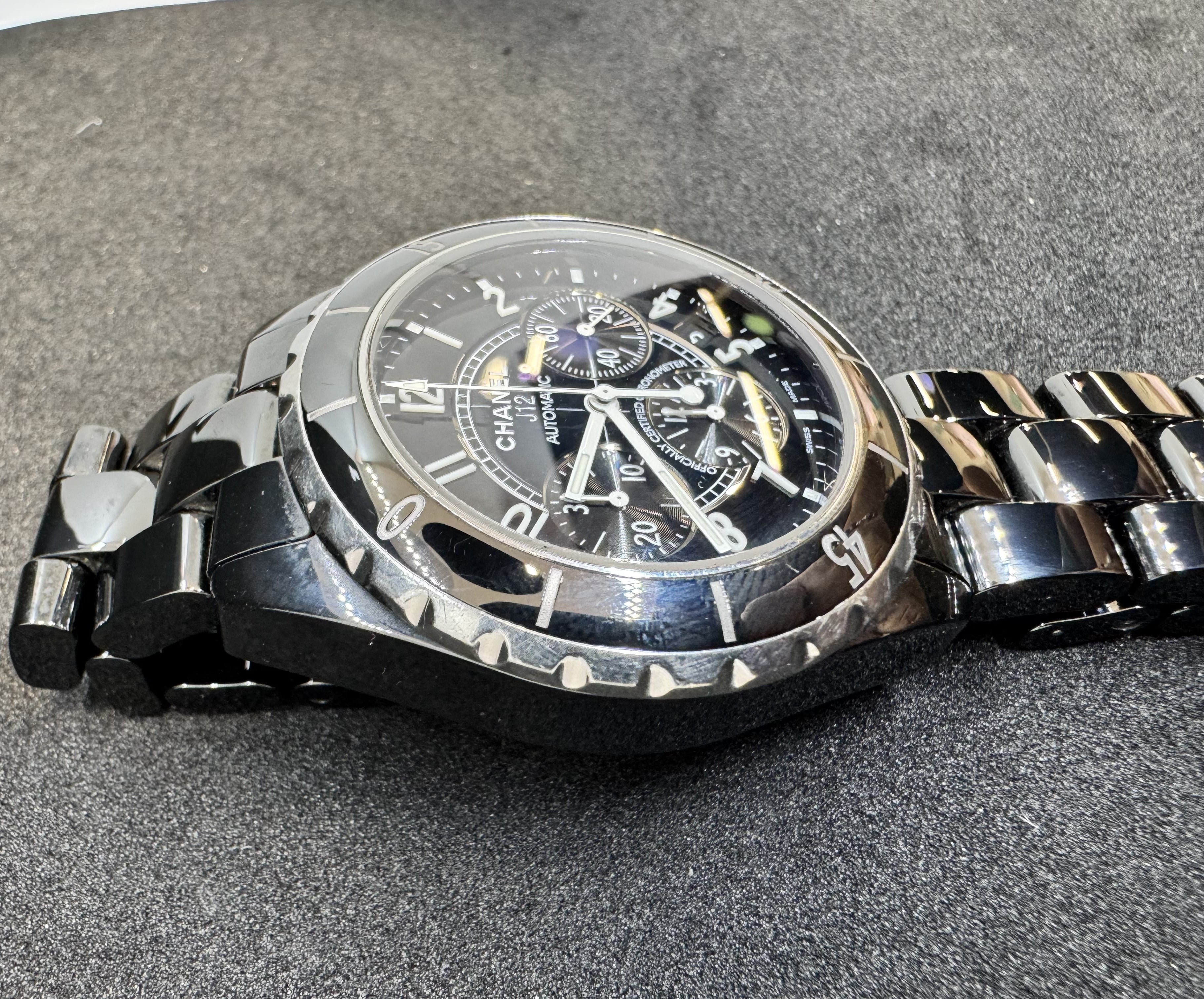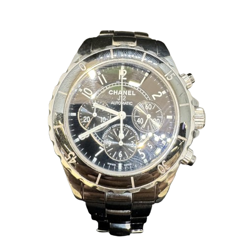 La beauté se retrouve dans cette montre raffinée, qui présente un boîtier en céramique et un bracelet en harmonie avec celui-ci.