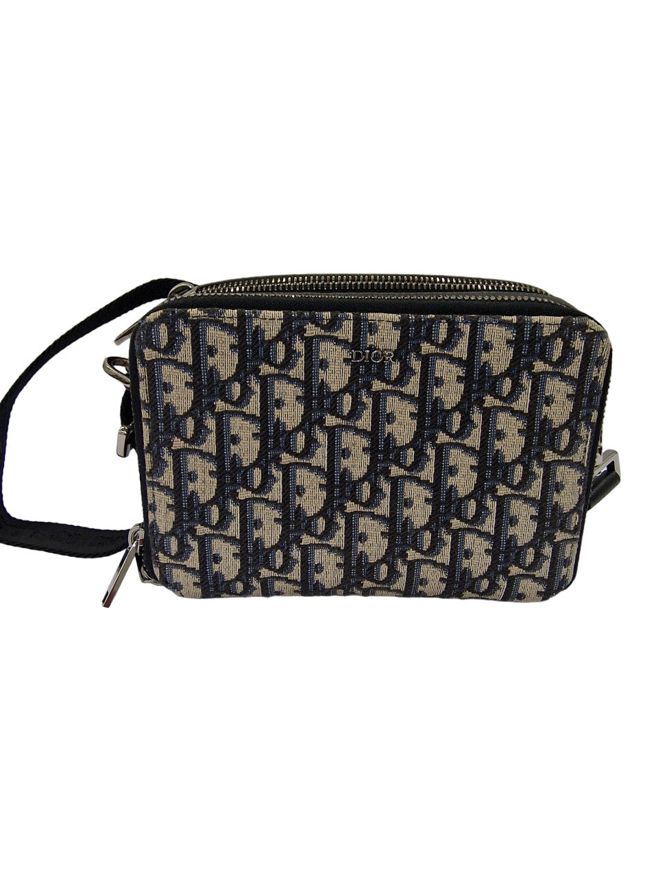 La pochette met à l'honneur le motif Dior Oblique, apparu sur les créations de la Maison pour la première fois en 1969. Confectionnée en jacquard beige et noir, elle présente une fermeture zippée bidirectionnelle sur le dessus, ainsi qu'une poche dotée de trois fentes pour cartes sur le devant. Elle arbore également une bandoulière noire réglable et amovible, ornée de la signature Christian Dior en jacquard de nylon, terminée par deux mousquetons griffés en laiton finition ruthénium. Agrémentée d'un logo Dior embossé, elle présente un intérieur épuré et spacieux, doté d'une poche plaquée pour garder vos essentiels en sécurité. Cette pochette est une pièce moderne qui viendra rehausser vos tenues d'élégance.