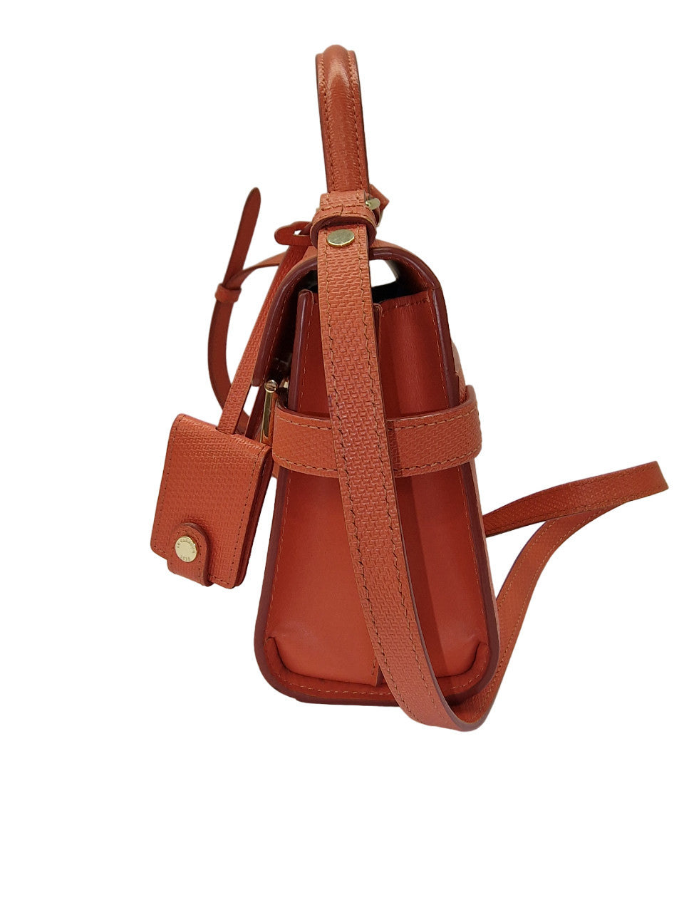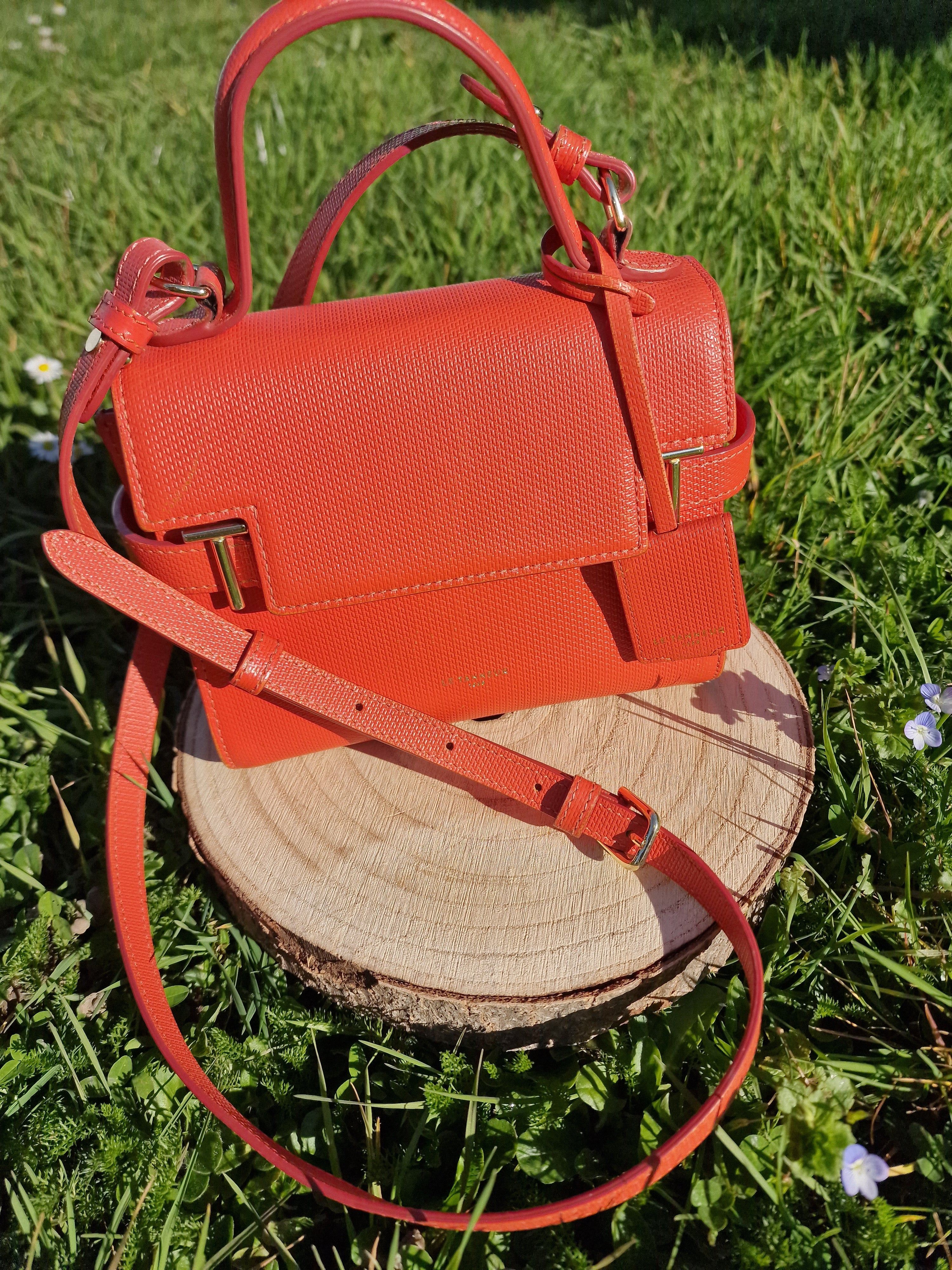Petit sac à main avec double rabat, bijouterie T signature et marquage Le Tanneur. Porté main, épaule ou croisé grâce à sa bandoulière ajustable et amovible.