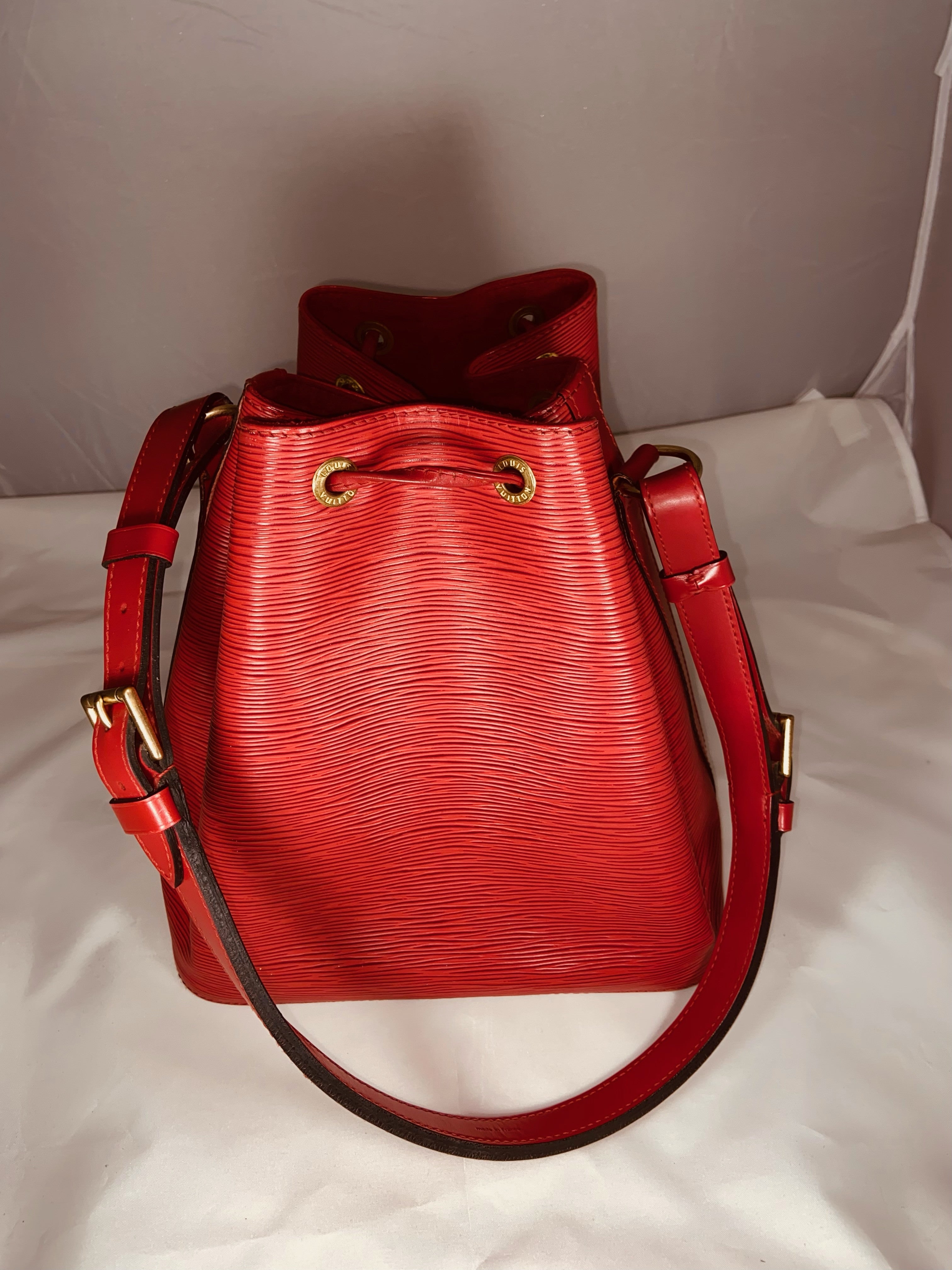 Très beau sac à main Louis Vuitton modèle NoéNoé couleur rouge.