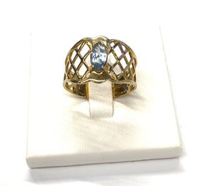 Superbe Bague en Or Jaune 14k avec Aigue Marine