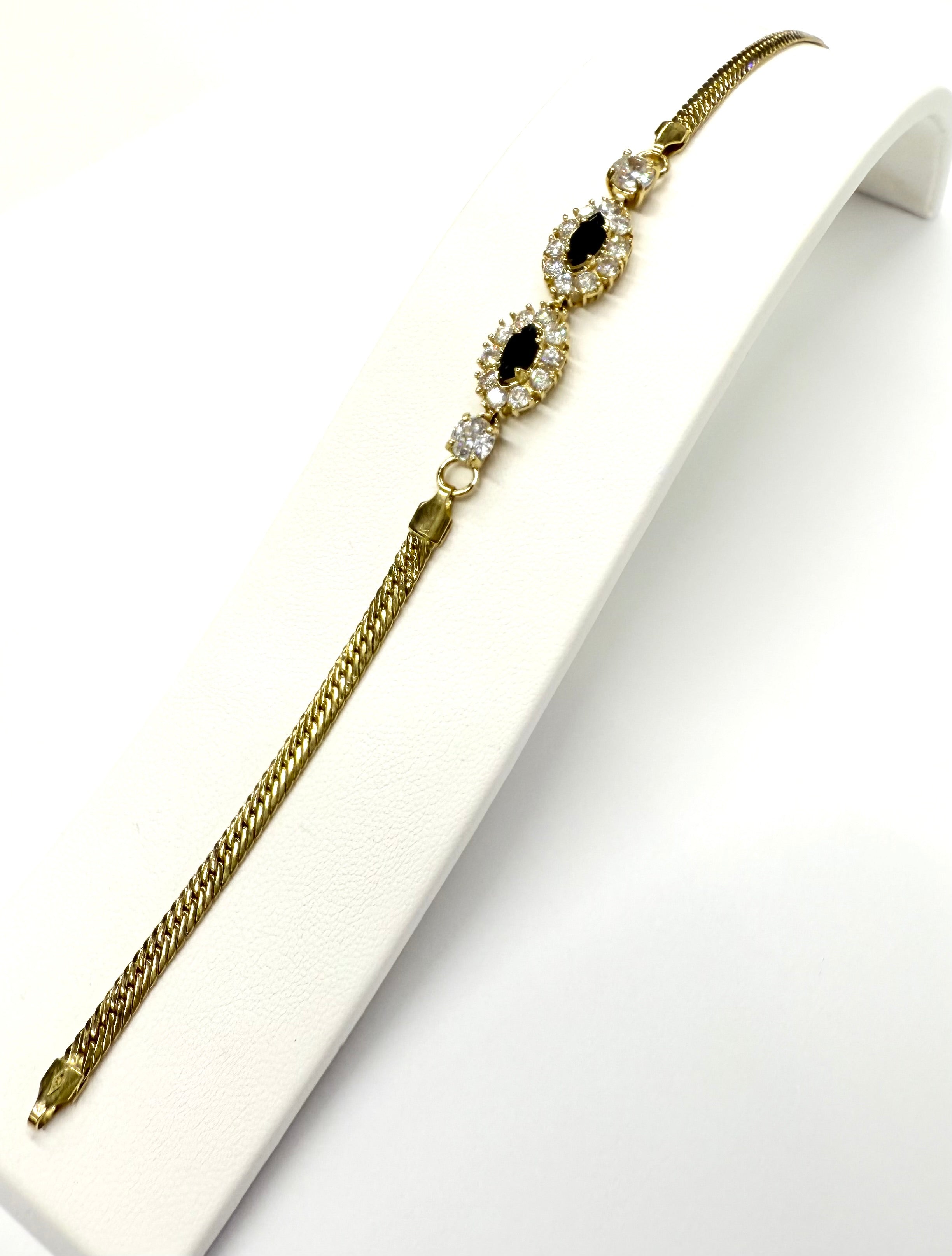 Cette magnifique parure en or jaune 750/1000 (18k) comprend un collier, un bracelet et des boucles d'oreilles dormeuses, tous ornés de saphirs et de zirconiums scintillants. Le collier est composé de 5 saphirs (0.6cm) et 53 zirconiums, le bracelet de 2 saphirs et 22 zirconiums, et les boucles d'oreilles de 2 saphirs et 20 zirconiums. Cette parure sublime votre style avec élégance et raffinement.
